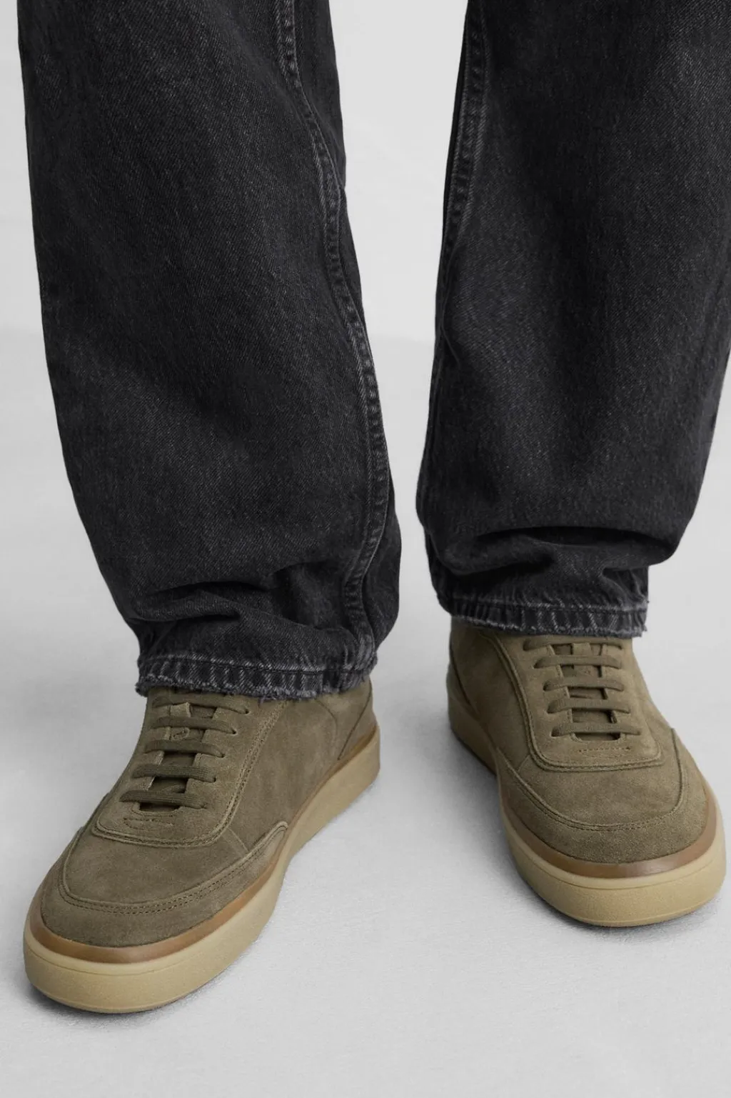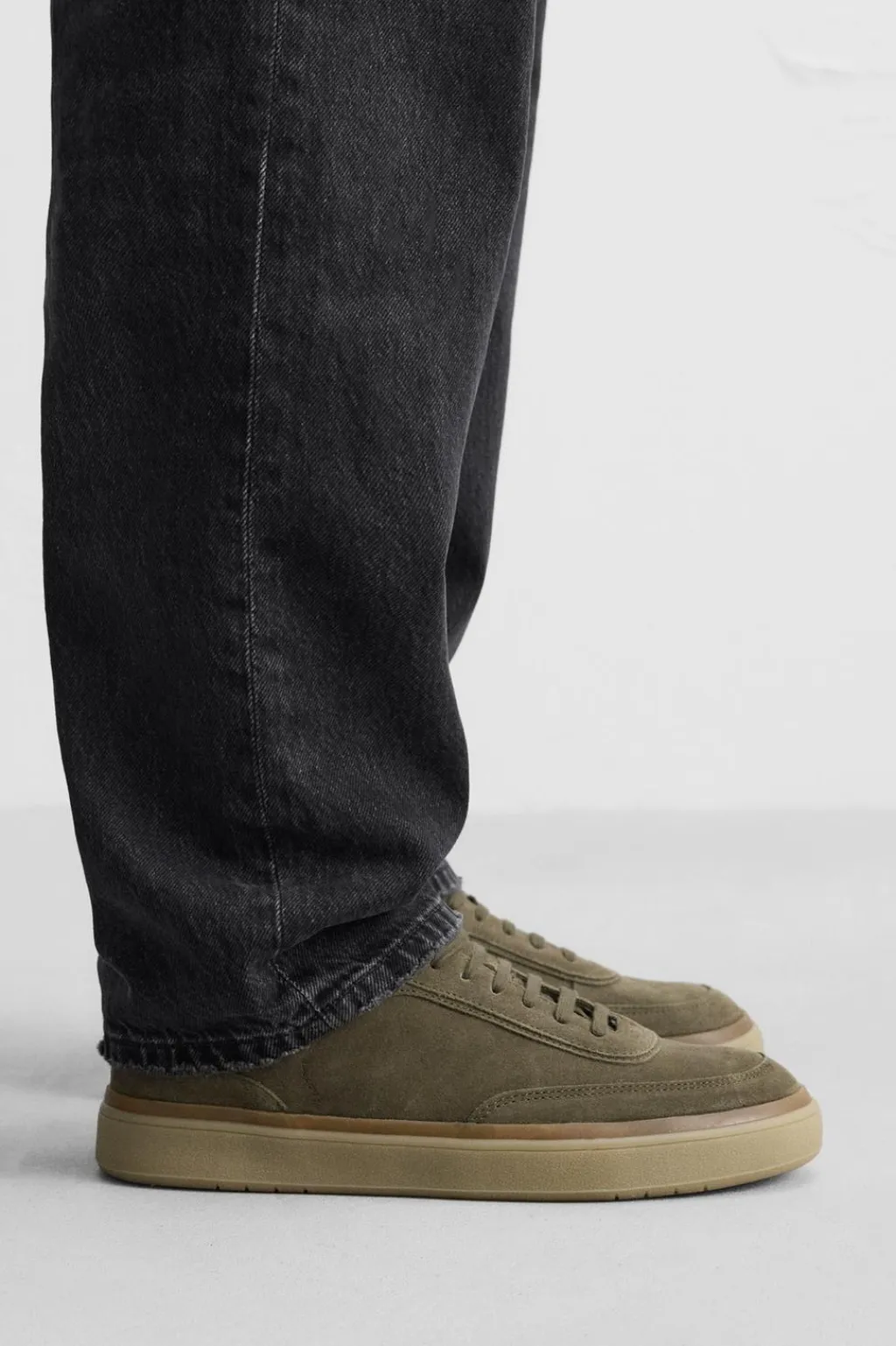 Zapatilla deportiva. Parte superior fabricada en piel con acabado serraje. Cordonera con siete pasados. Suela a contraste.