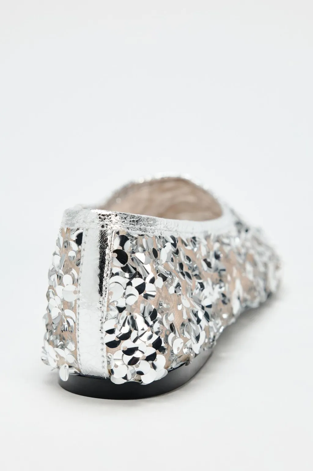 Zapato tipo bailarina. Detalle lentejuelas en el corte. Escote y punta redonda.