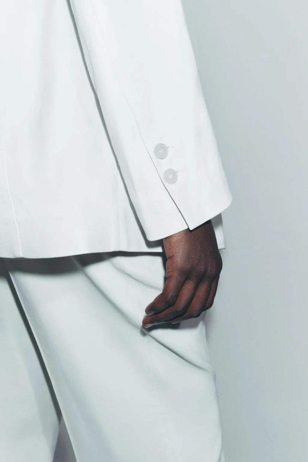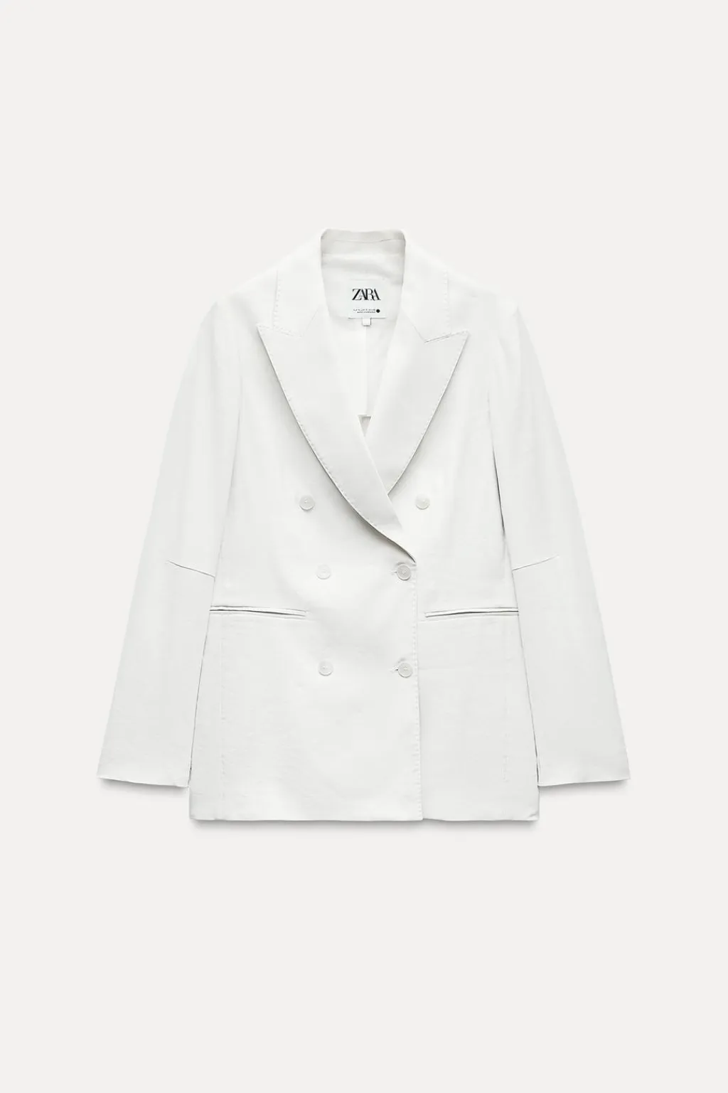 Blazer confeccionada en hilatura con lino. Cuello solapa de muescas y manga larga acabada en abertura y botones. Bolsillos delantero. Cierre frontal cruzado con botones.