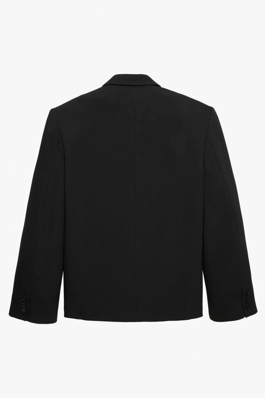 Blazer relaxed fit confeccionada en tejido fluido de lana y viscosa. Cuello con solapas de pico y manga larga acabada en puño con botón. Bolsillos de vivo en pecho y de solapa en cadera. Detalle de bolsillo interior. Cierre frontal de botonadura.