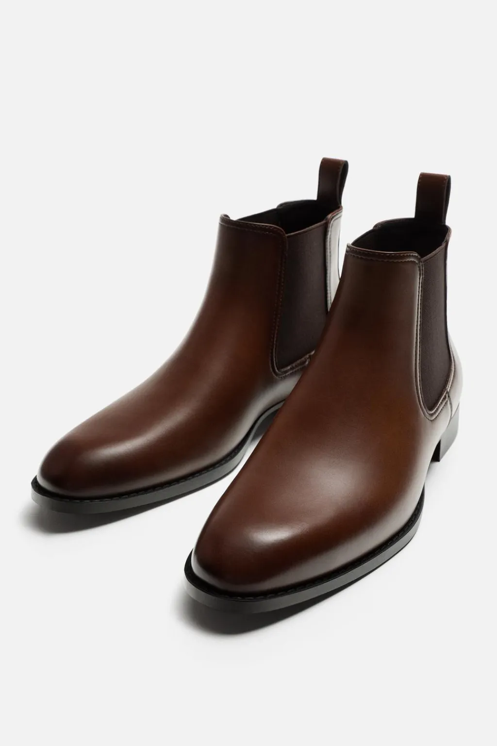 Bota estilo chelsea. Parte superior lisa. Cuenta con dos piezas elásticas laterales y tirador trasero para facilitar el calce. Horma en punta
