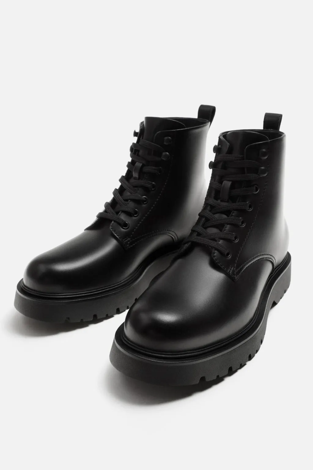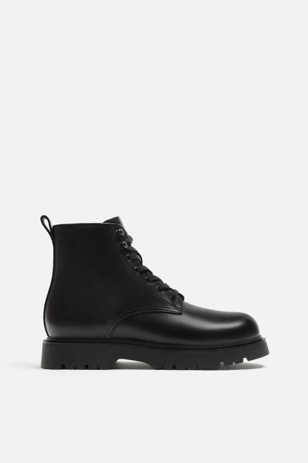 Bota con cordones. Tirador en la parte trasera para facilitar el calce. Suela con volumen y piso track.