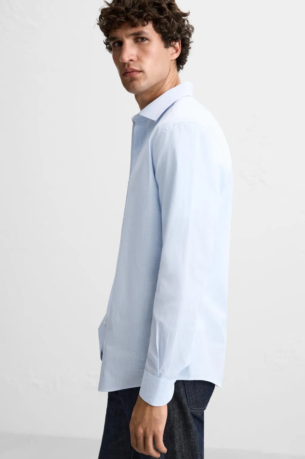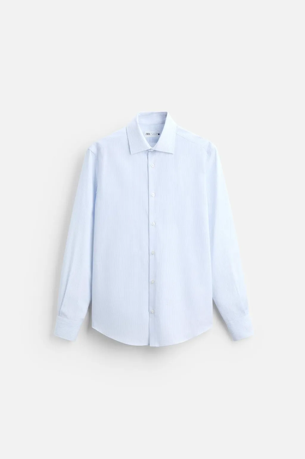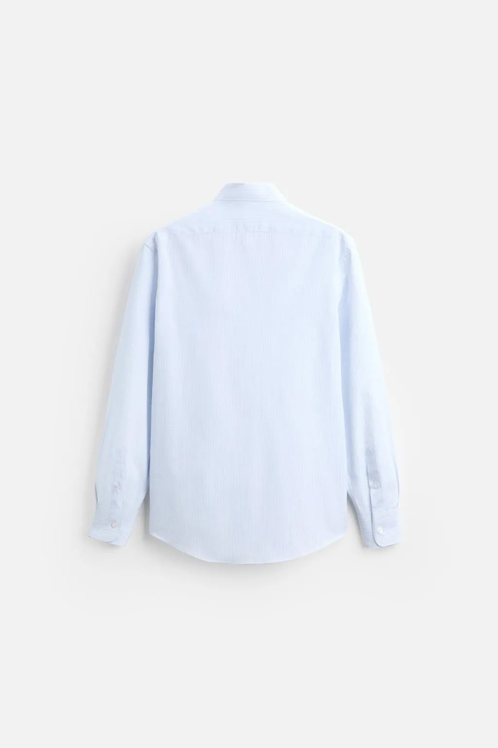 Camisa regular fit confeccionada en tejido de algodón. Cuello italiano y manga larga acabada en puño con botón. Cierre frontal de botonadura.