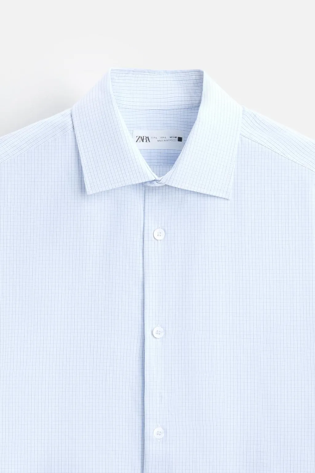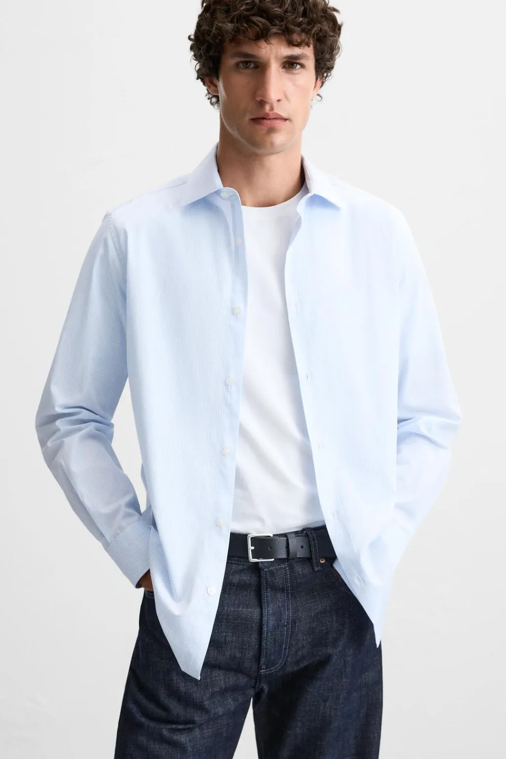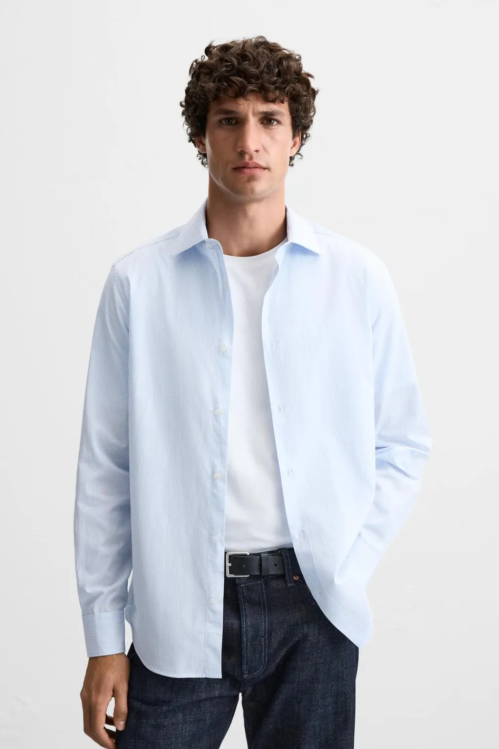 Camisa regular fit confeccionada en tejido de algodón. Cuello italiano y manga larga acabada en puño con botón. Cierre frontal de botonadura.