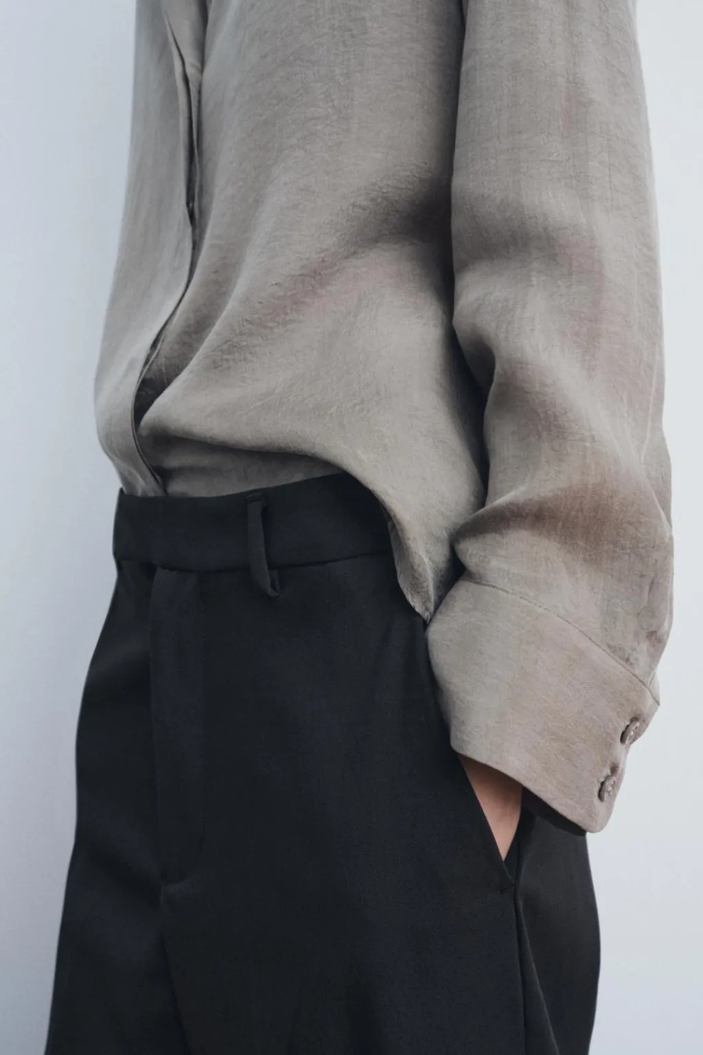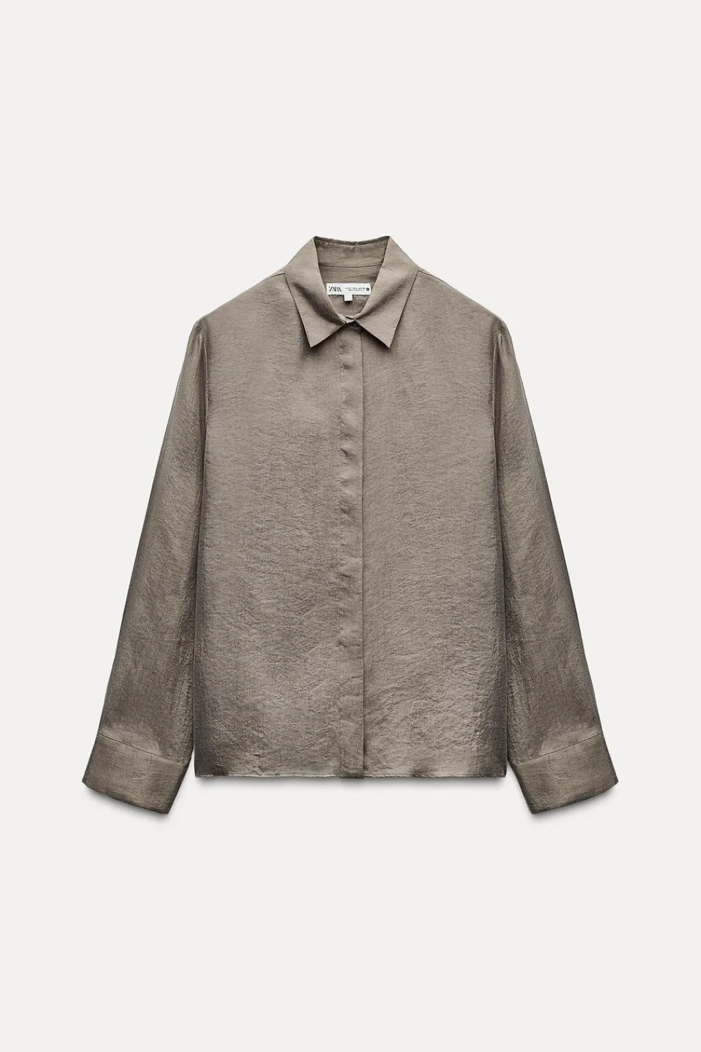 Camisa fluida confeccionada en hilatura de lyocell. Cuello solapa y manga larga acabada en puño. Bajo recto. Cierre frontal con botones ocultos por solapa.