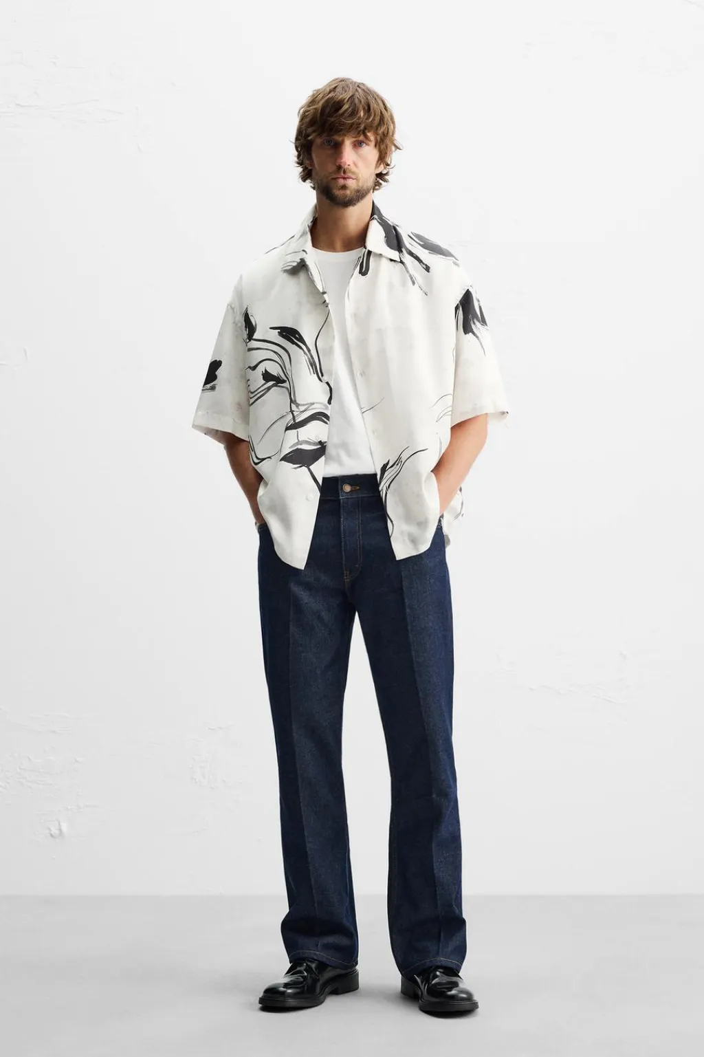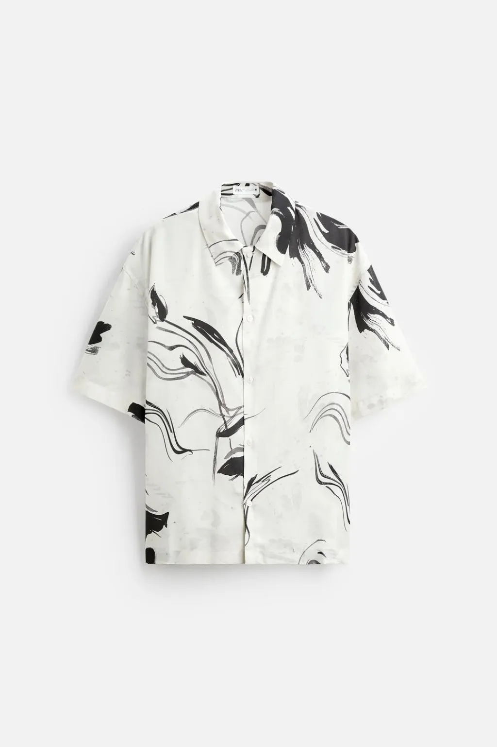 Camisa regular fit confeccionada en tejido de lyocell. Cuello solapa y manga corta. Cierre frontal de botonadura.