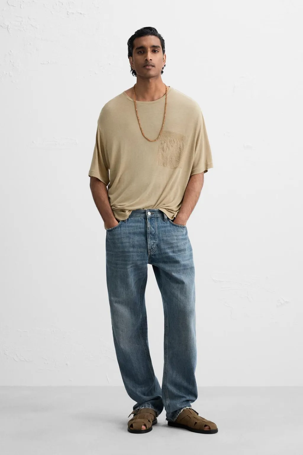 Camiseta relaxed fit. Cuello redondo y manga corta. Bordados combinados a contraste en delantero.