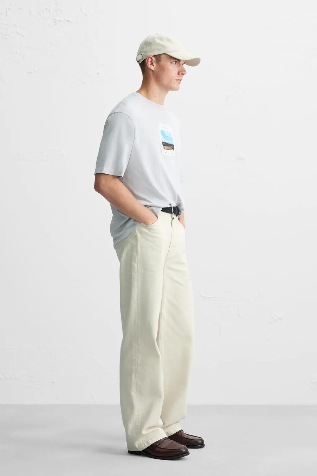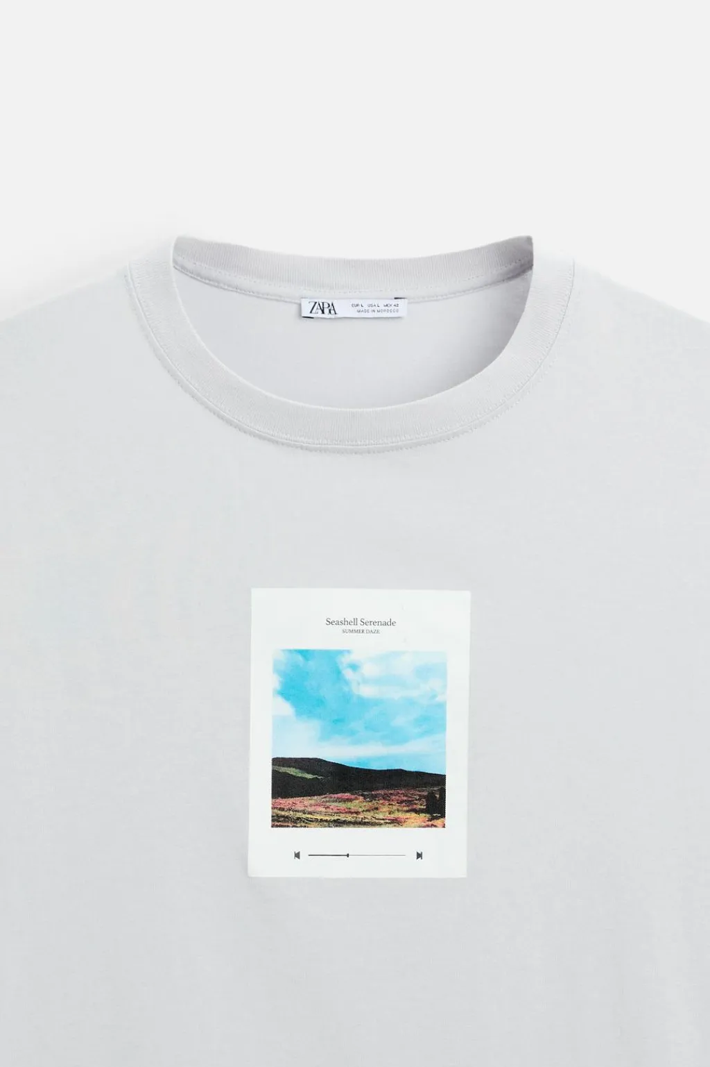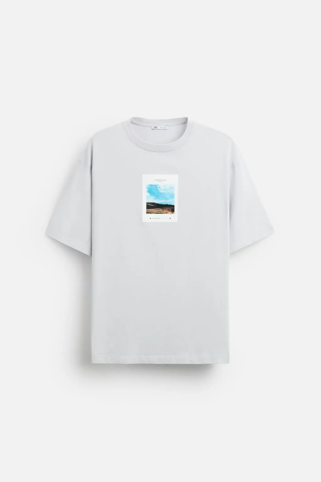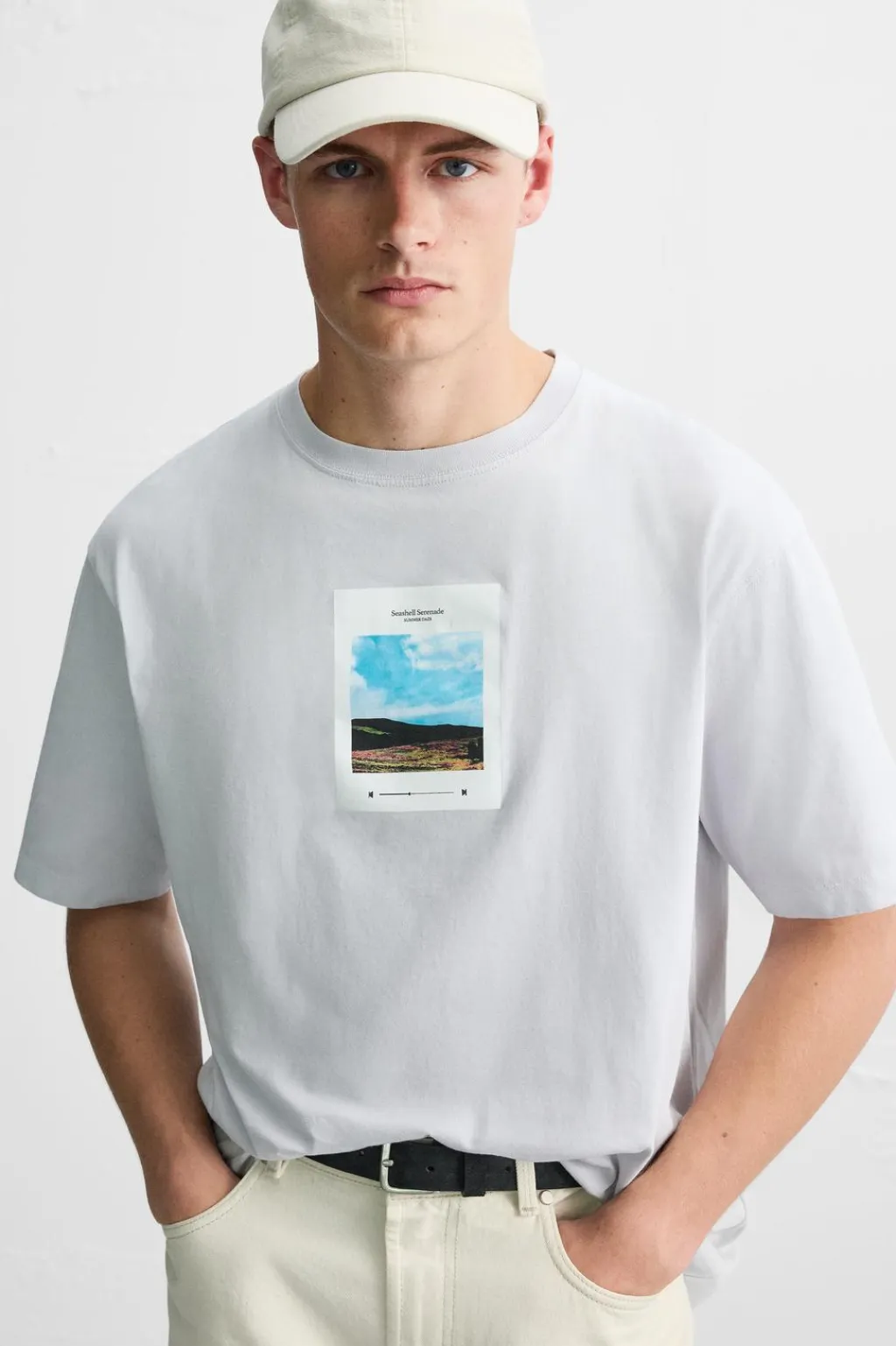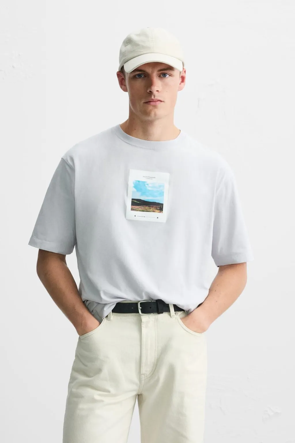 Camiseta relaxed fit. Cuello redondo y manga corta. Estampación fotográfica combinada a contraste en delantero.
