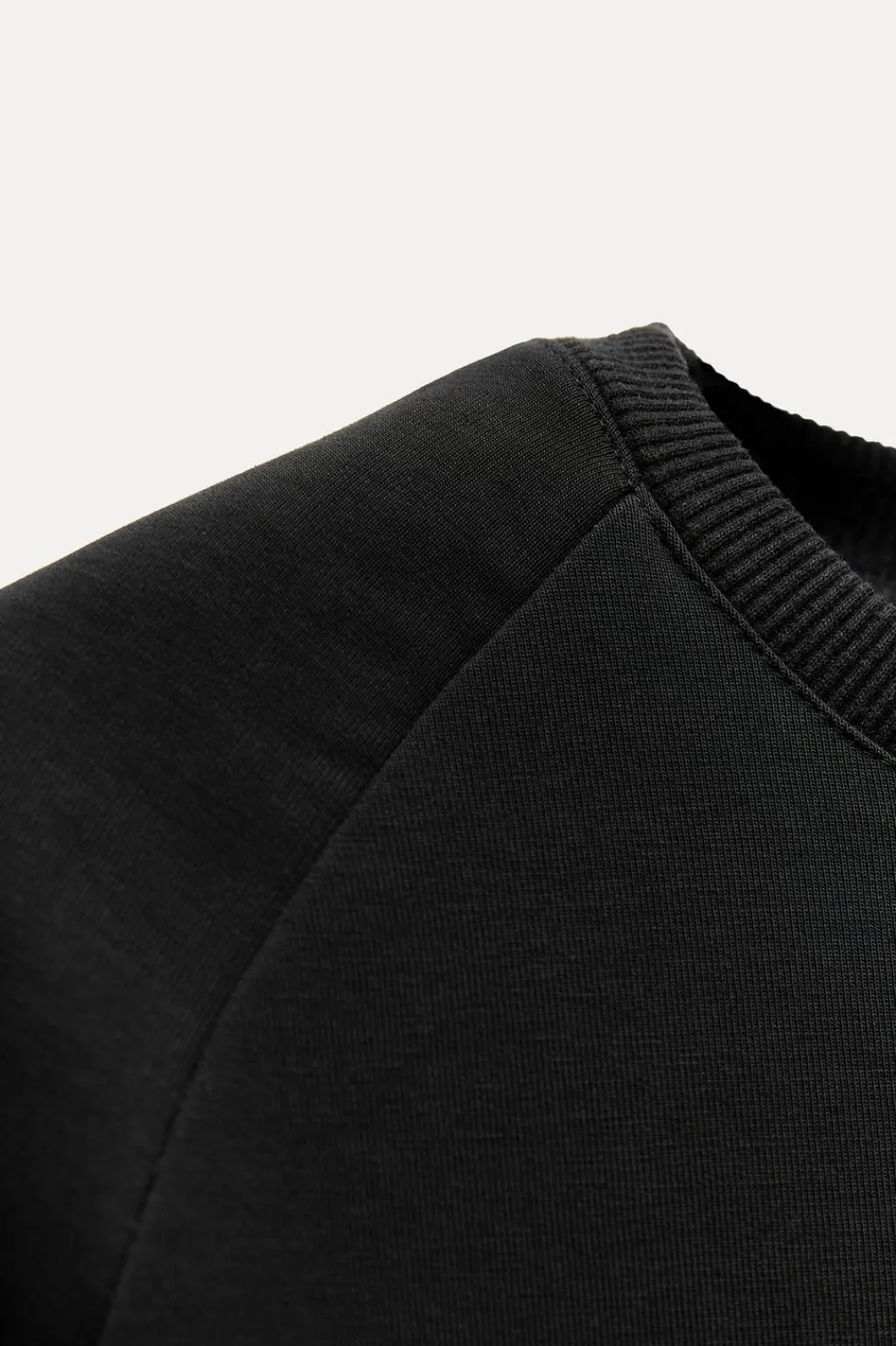 Camiseta de cuello redondo y manga corta con hombreras. Detalle de cinta en mismo tejido ajustable con hebilla metálica.