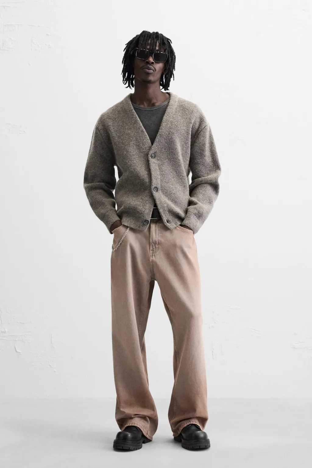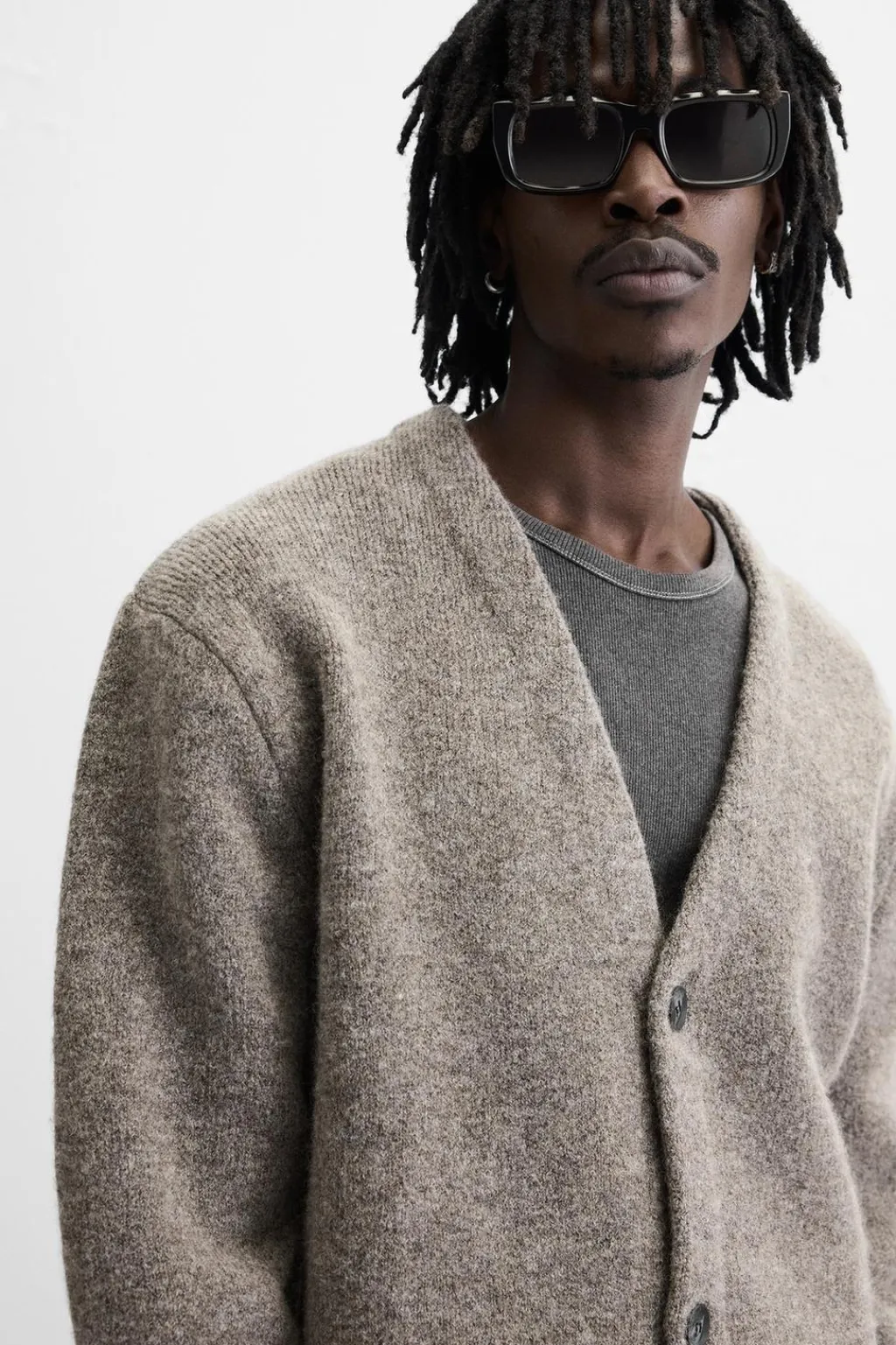 Cárdigan relaxed fit tejido en hilatura con textura. Cuello pico y manga larga. Acabados en rib. Cierre frontal de botonadura.