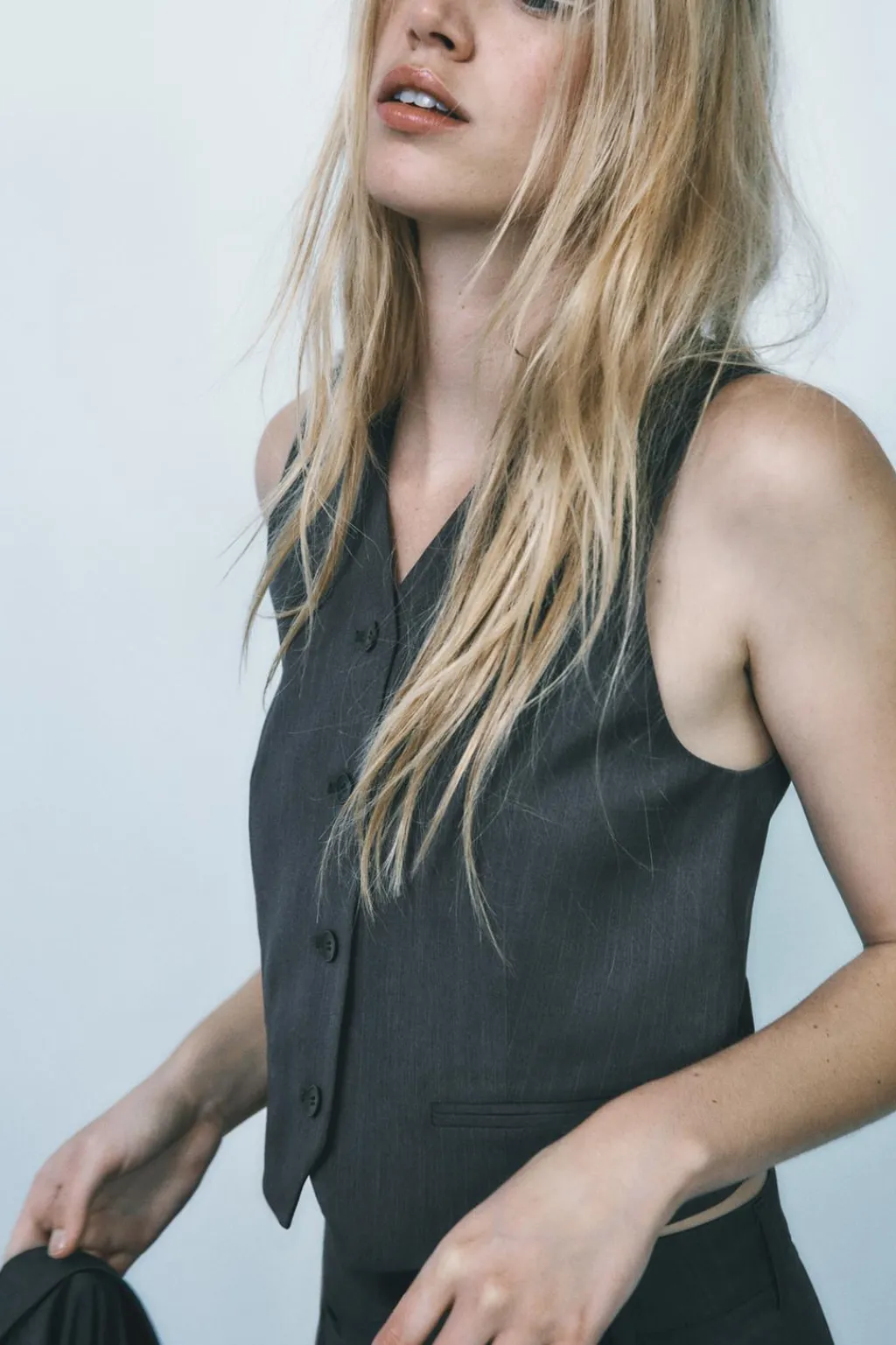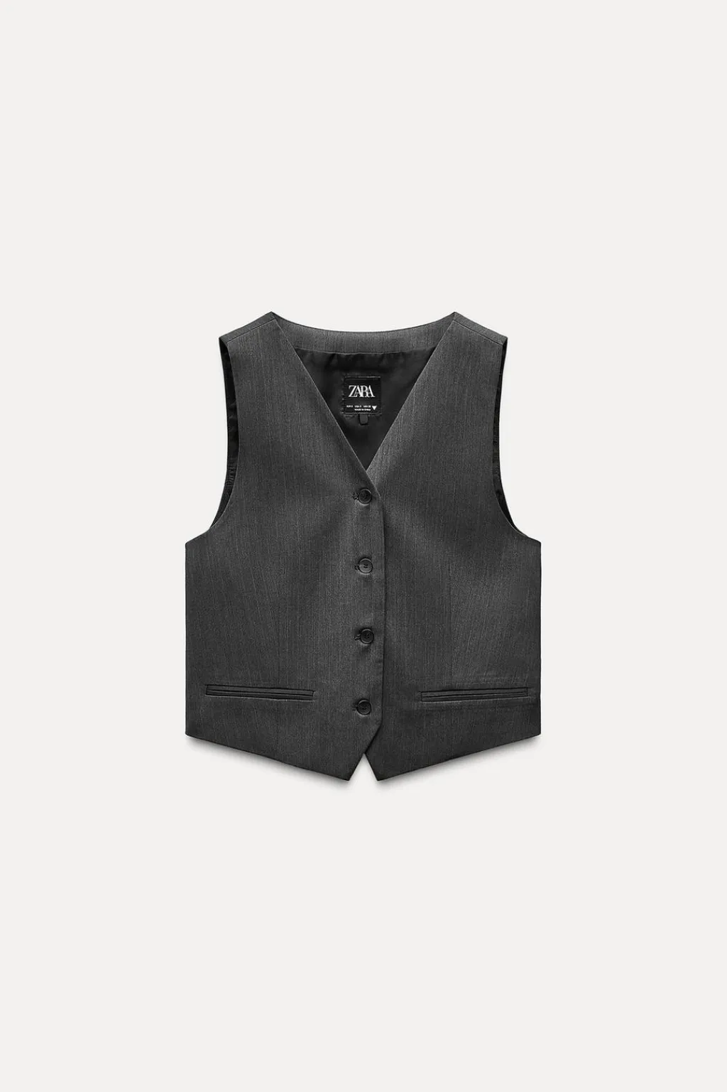 Chaleco de escote pico y manga sisa. Bolsillos de vivo en delantero. Forro interior combinado. Trabilla ajustable en espalda y bajo con aberturas. Cierre frontal con botones.