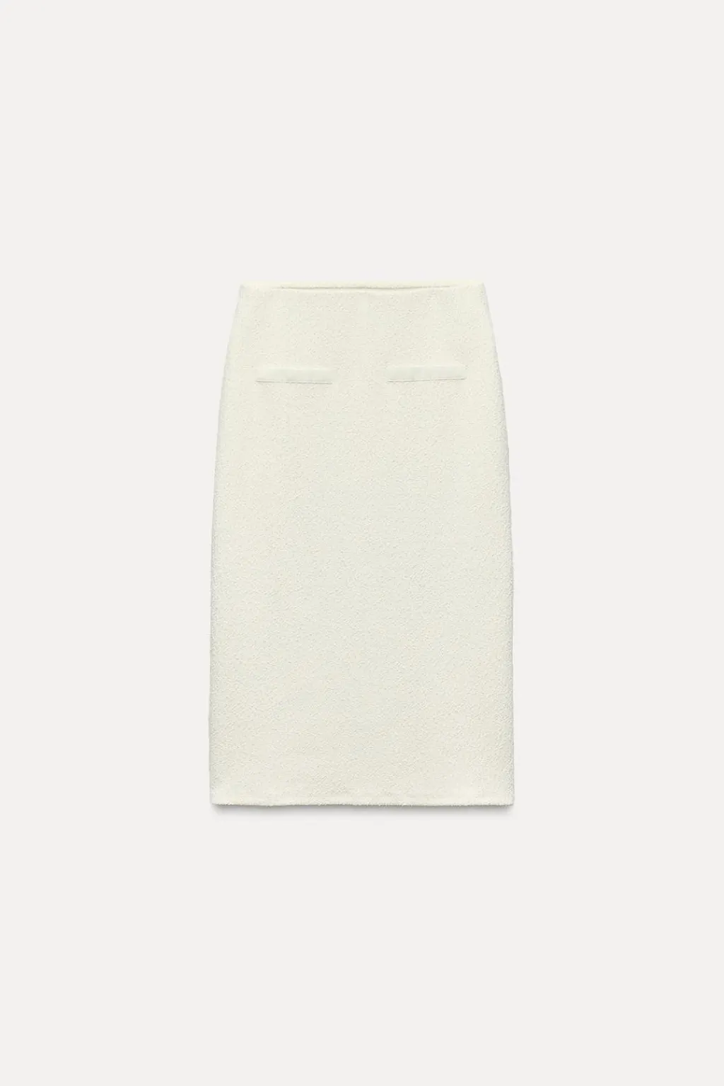 Falda midi confeccionada en hilatura con mezcla de algodón. Tiro medio y cintura con elástico. Falsos bolsillos de vivo en delantero.