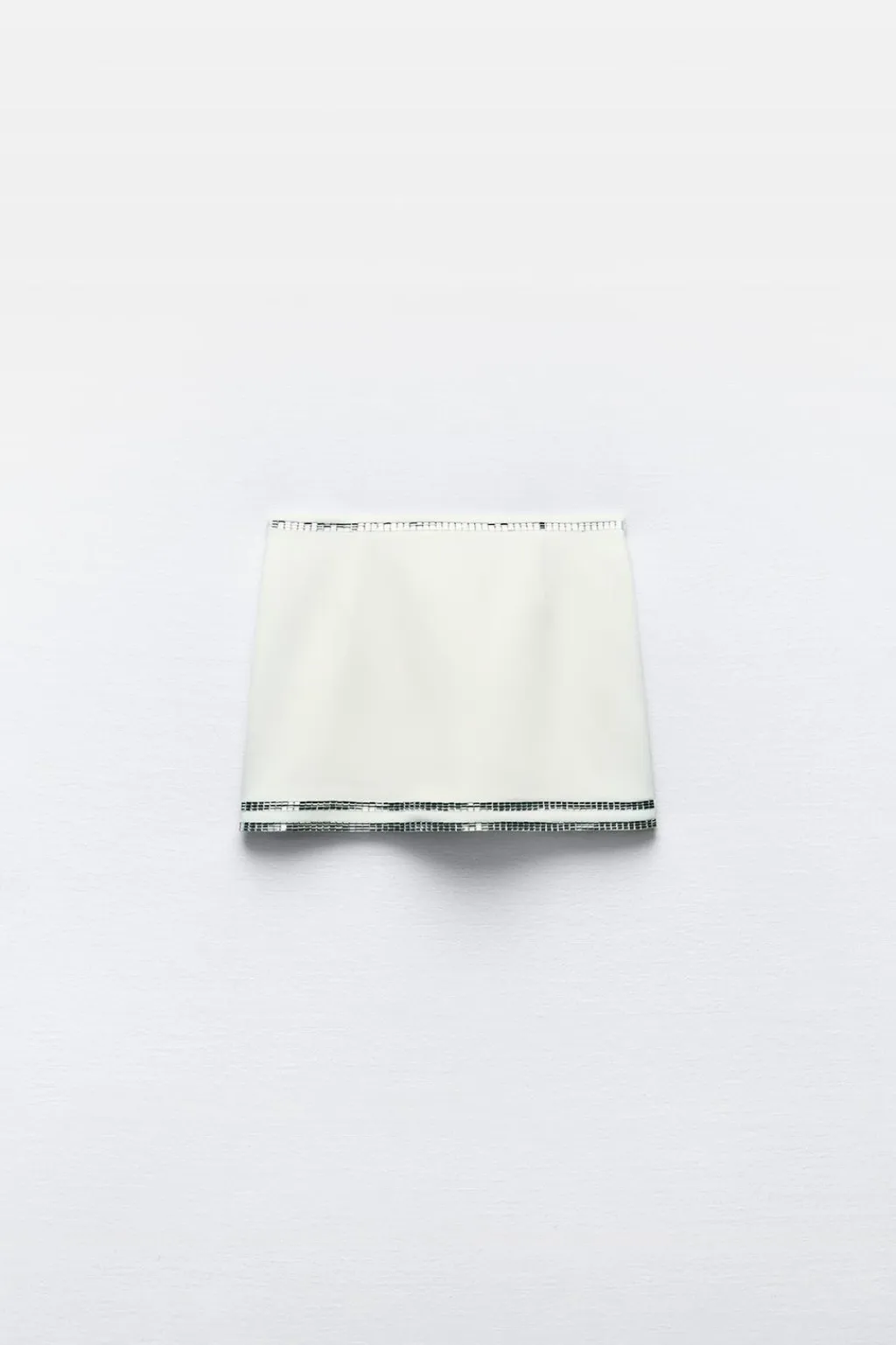 Falda pantalón de tiro medio. Detalle aplicación joyas combinadas a contraste. Forro interior tipo shorts. Cierre lateral con cremallera oculta en costura.