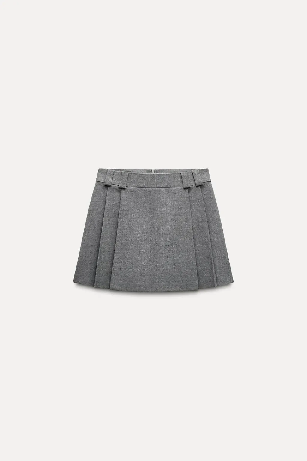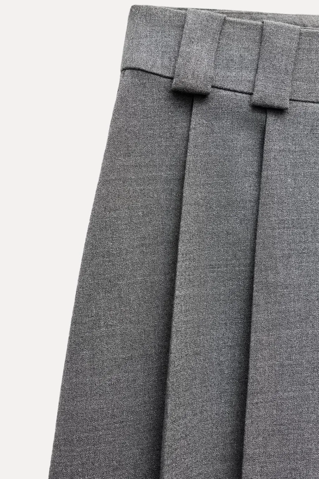 Falda pantalón de tiro alto con pliegues. Forro interior. Cierre en espalda con cremallera oculta en costura.