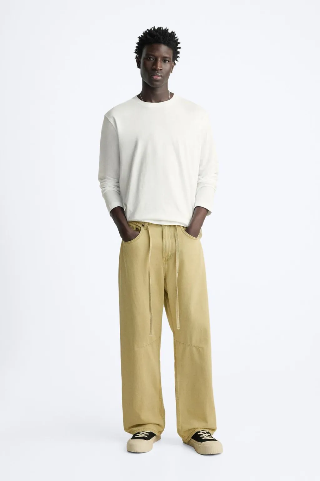 Jeans baggy fit confeccionados en denim de algodón con acabado efecto encerado. Cinco bolsillos. Efecto lavado. Cierre frontal con cremallera y botón.