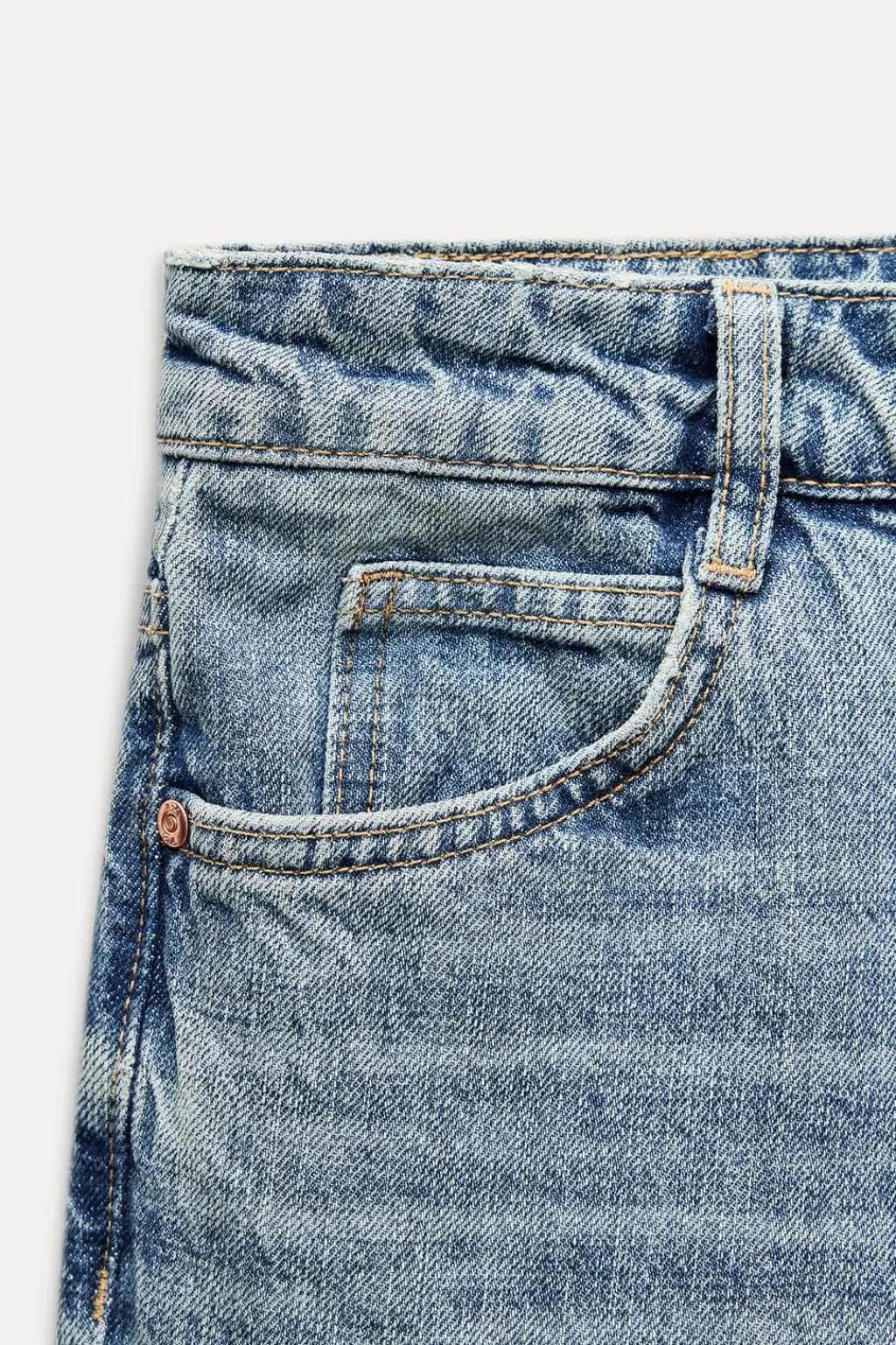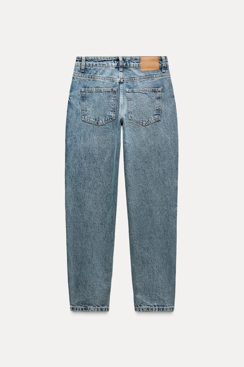 Jeans de tiro alto con cinco bolsillos. Efecto lavado. Cierre frontal con cremallera y botón.