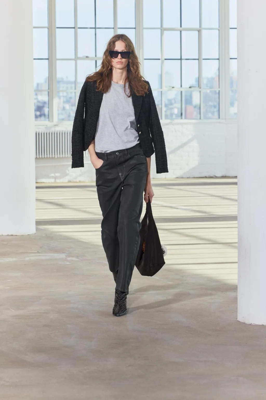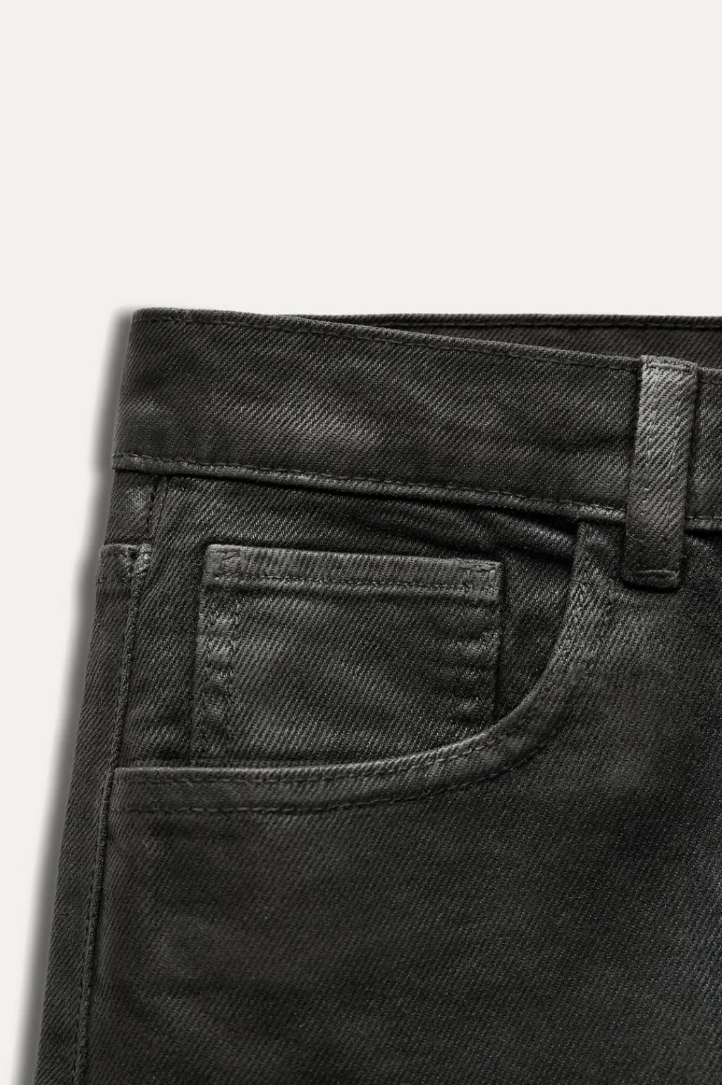 Jeans de tiro medio y cintura con trabillas. Cinco bolsillos. Pierna recta. Cierre frontal con cremallera y botón.