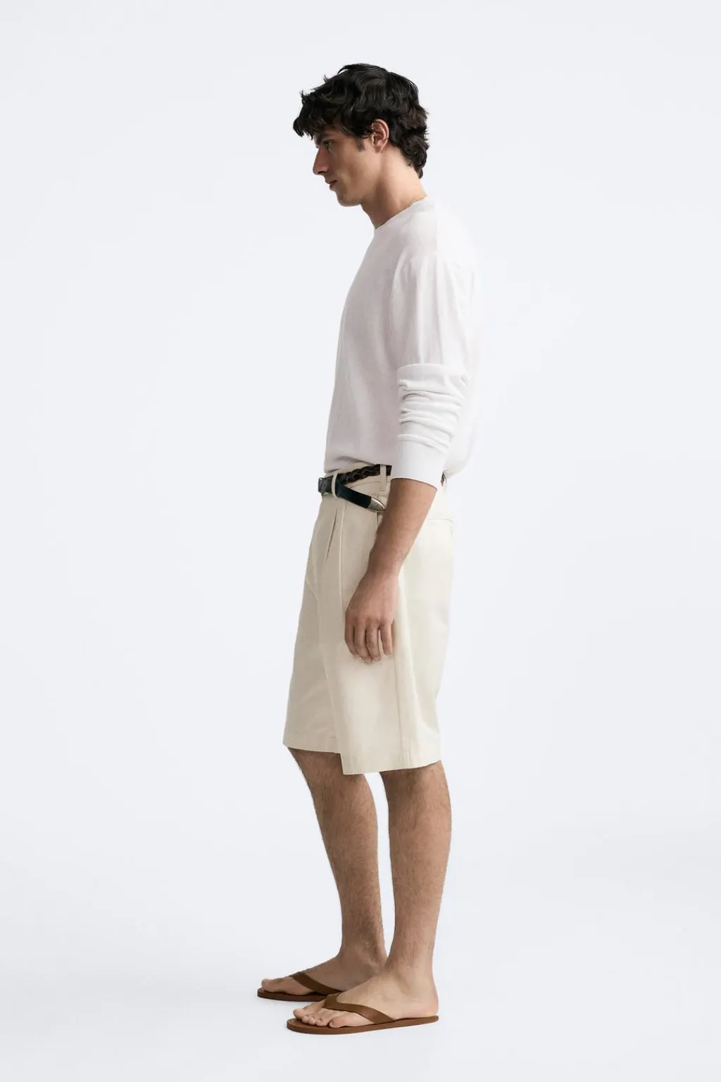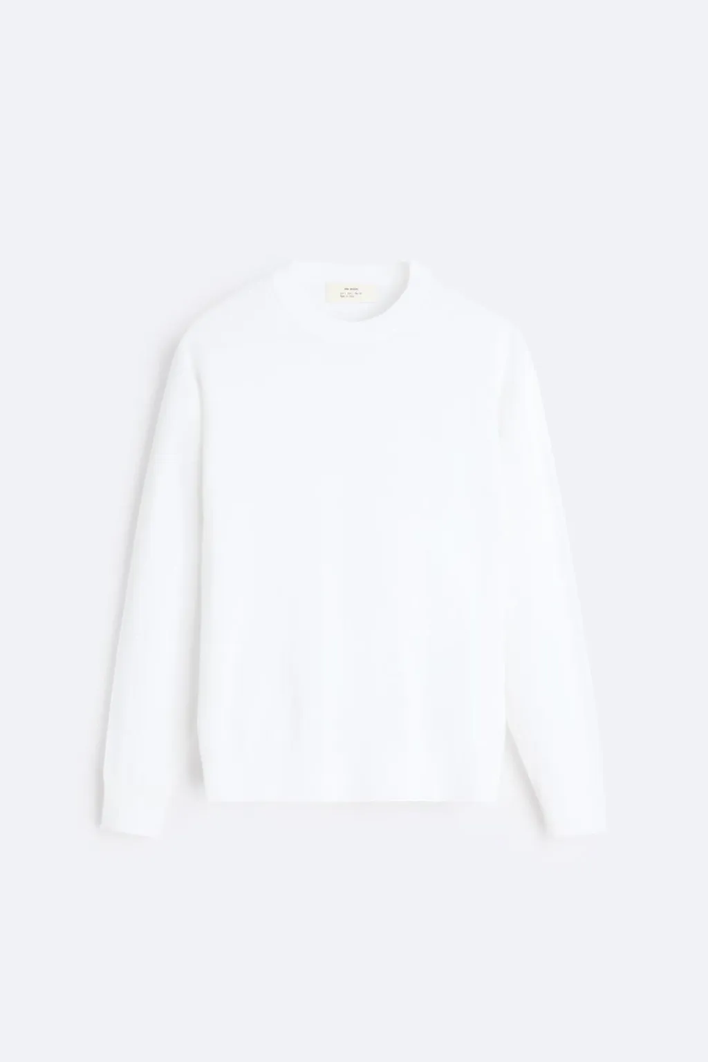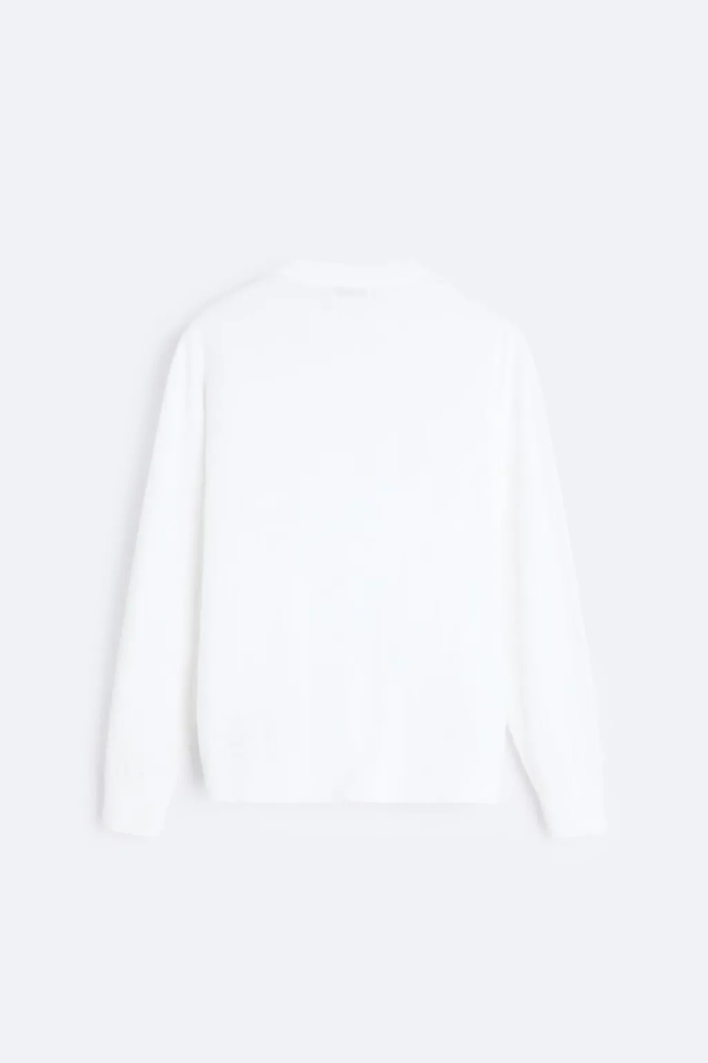 Jersey ligero tejido en hilatura con mezcla de algodón y 10% de cáñamo. Cuello redondo y manga larga. Acabados en rib.