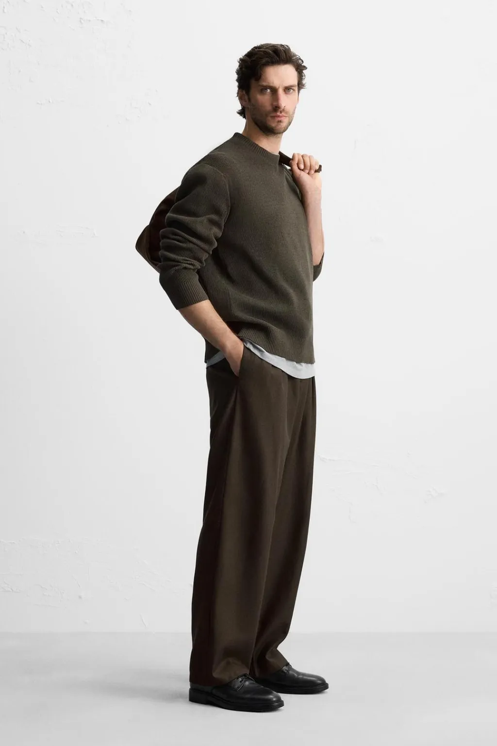 Jersey regular fit tejido en hilatura con textura chenilla. Cuello redondo y manga larga. Acabados en rib.