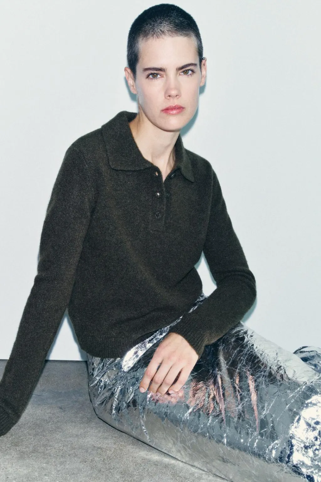 Jersey de cuello polo y manga larga. Botones delanteros.