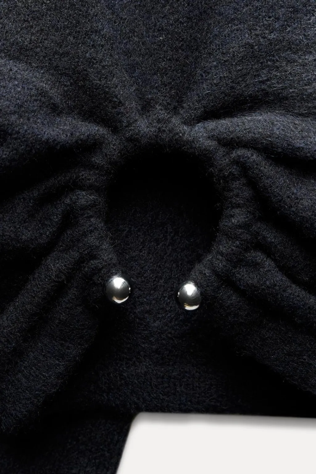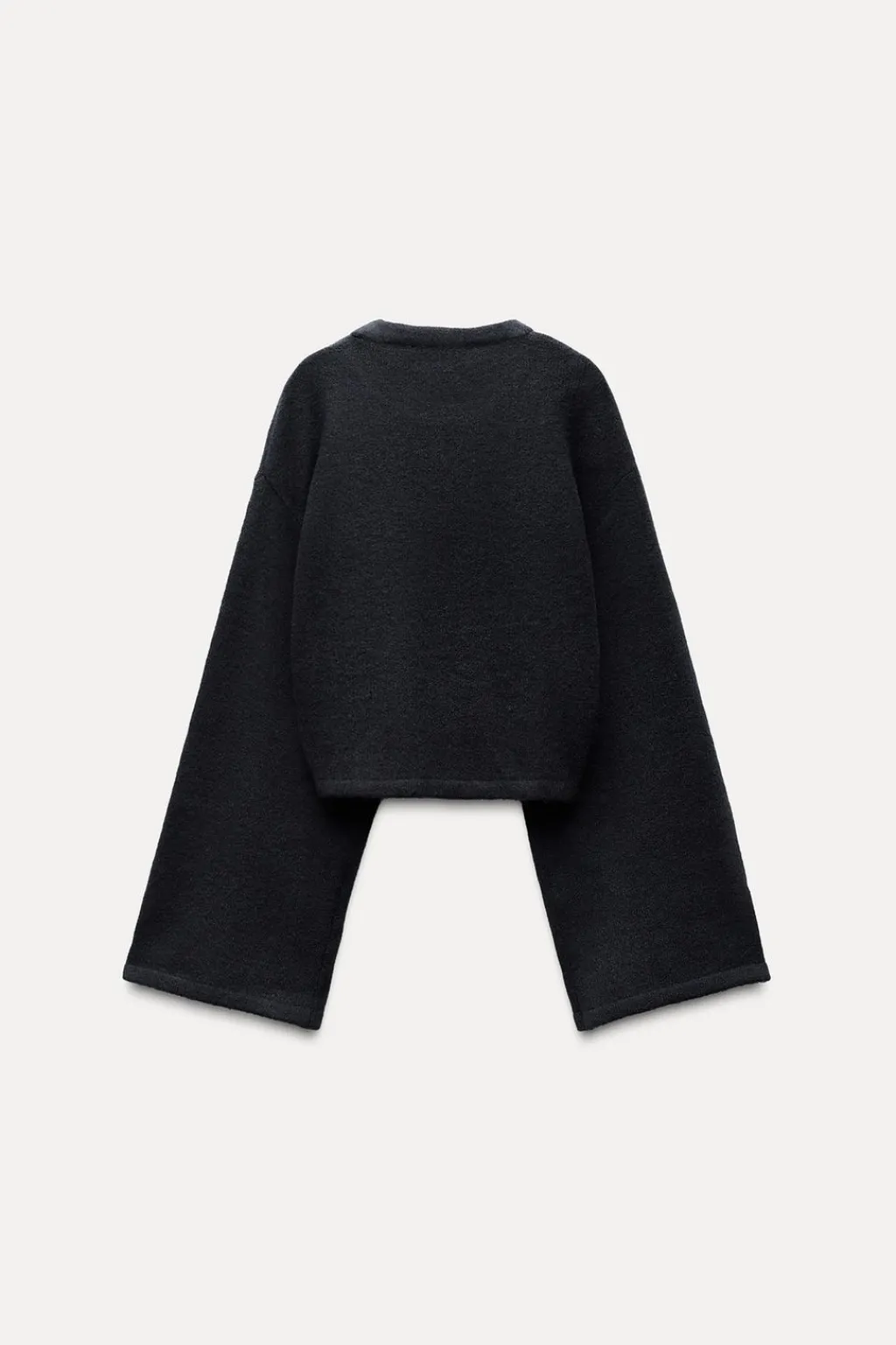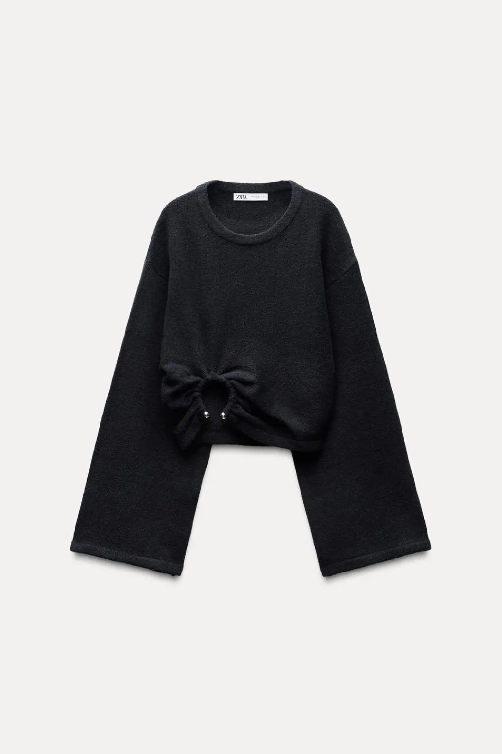 Jersey de cuello redondo y manga larga ancha. Bajo acabado con aplique metálico delantero.