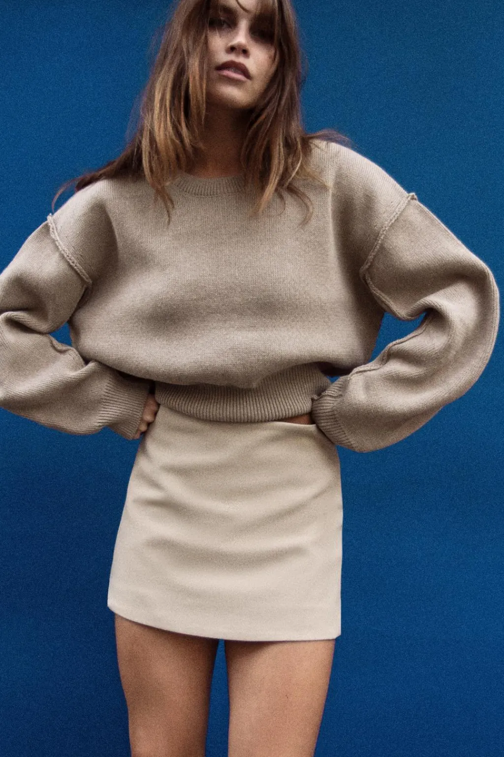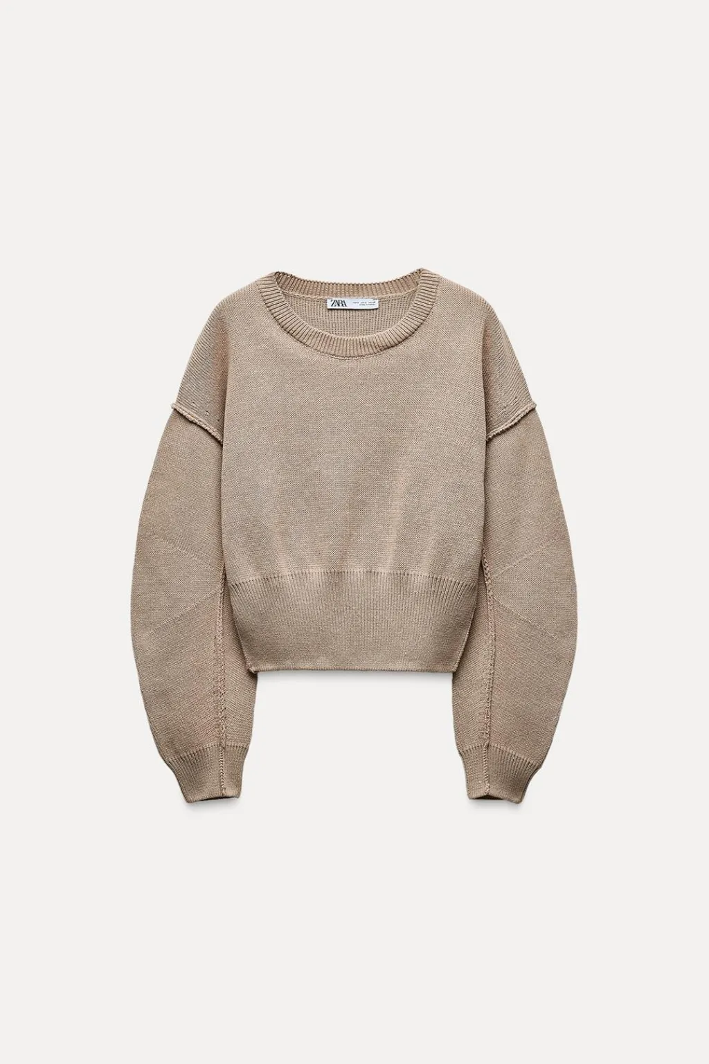 Jersey de cuello redondo y manga larga abullonada. Acabados en rib.