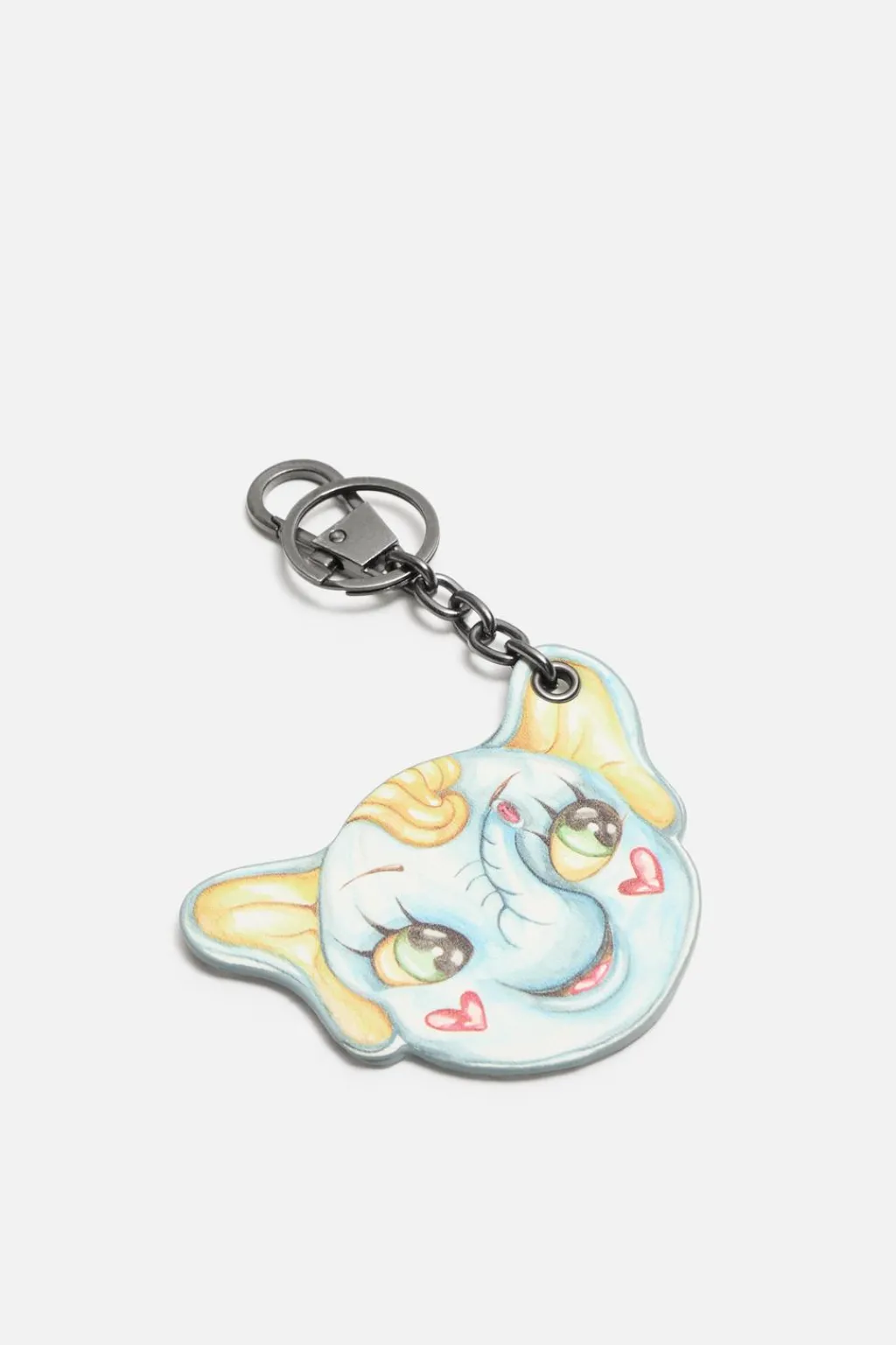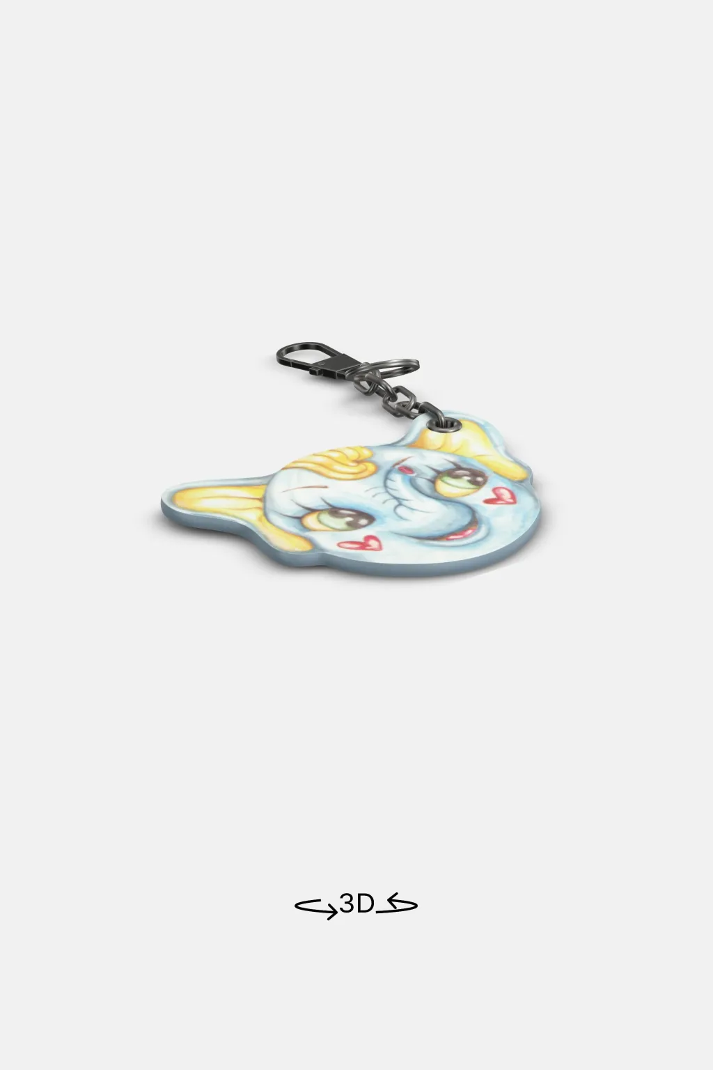 Llavero estampado con dibujo de elefante en ambos lados. Dispone de anilla y mosquetón metálicos.