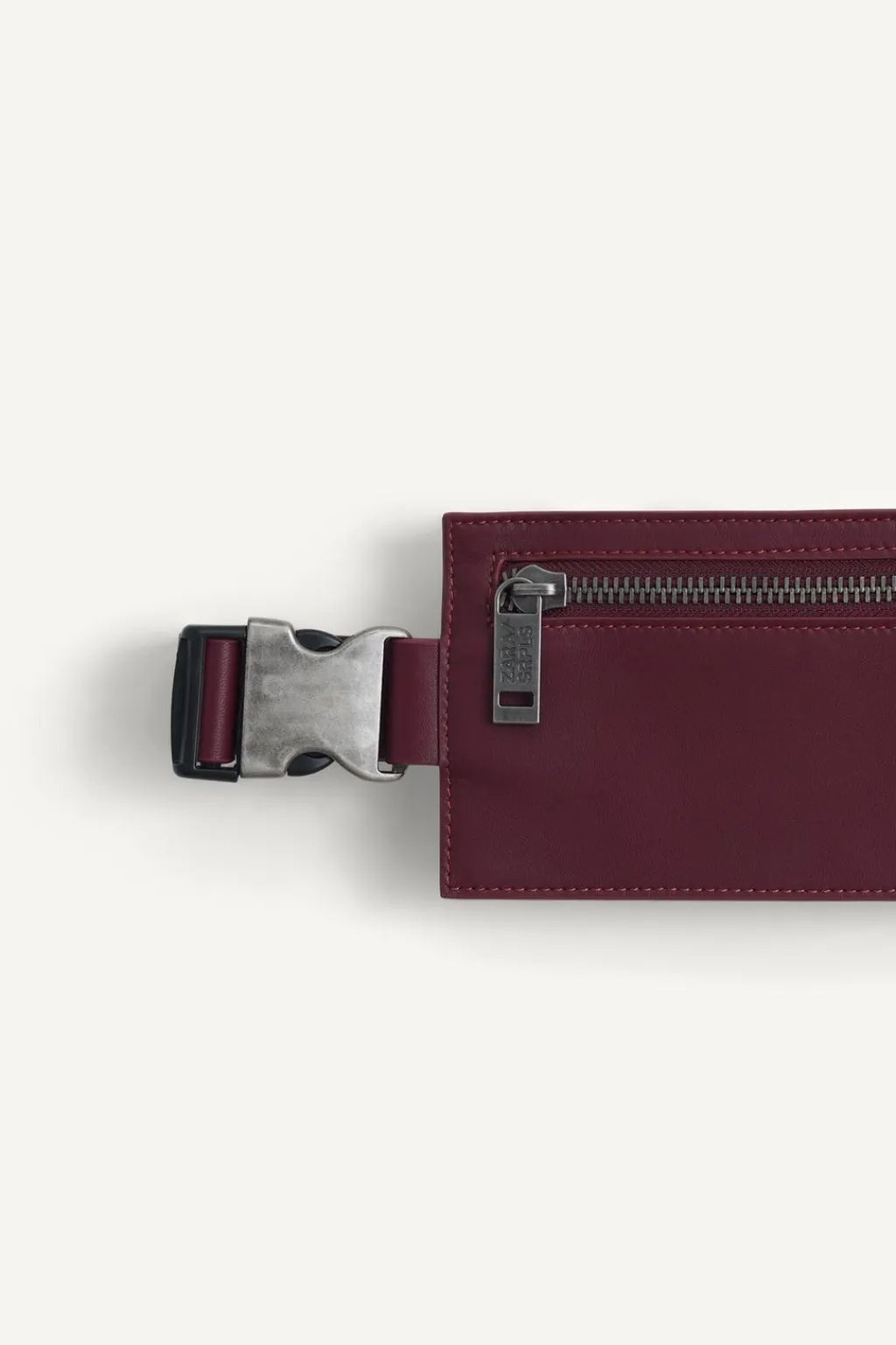 Riñonera fabricada en piel. Compartimento principal con cierre mediante cremallera. Asa en piel ajustable con cierre metálico de liberación rápida.