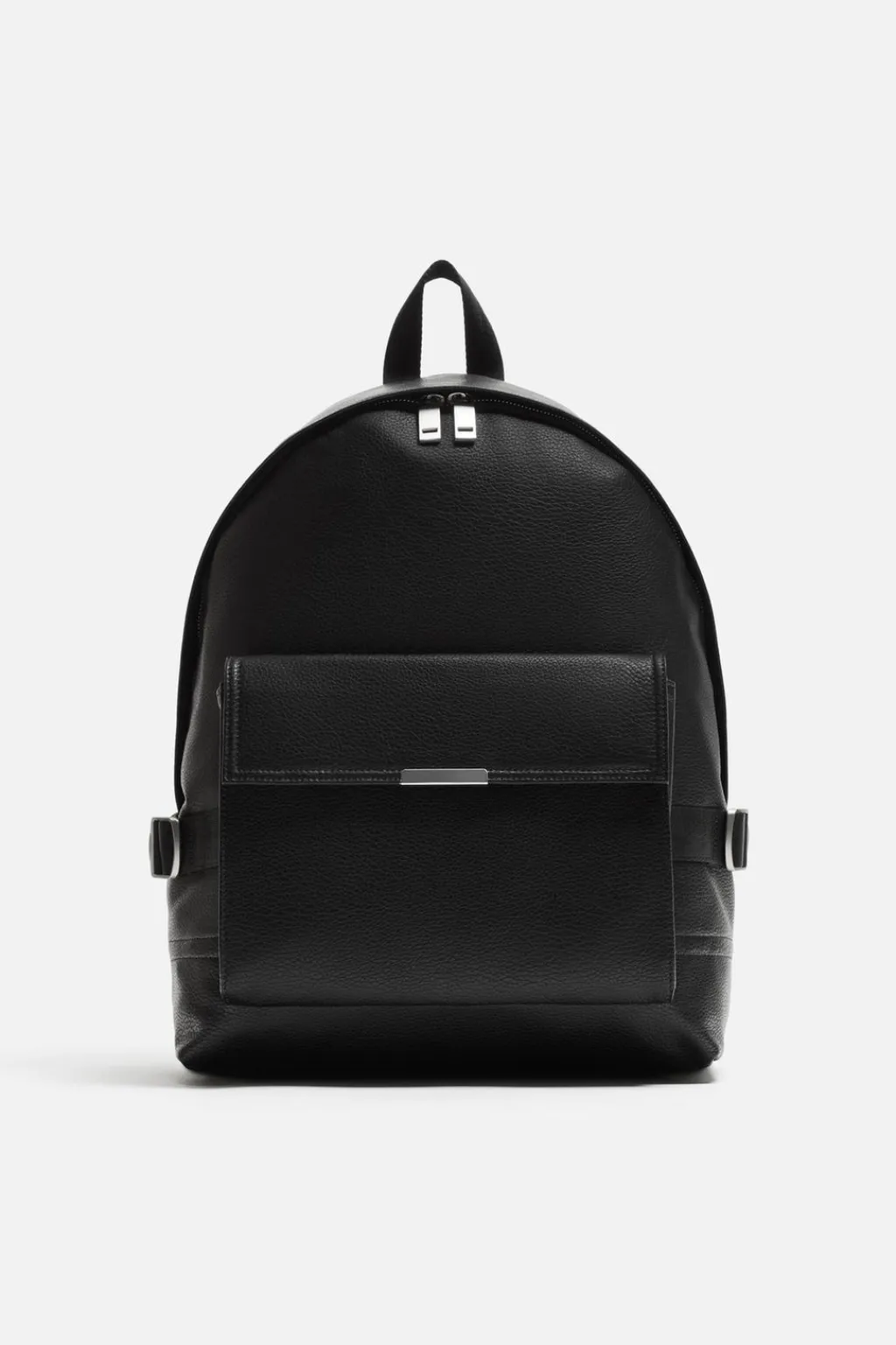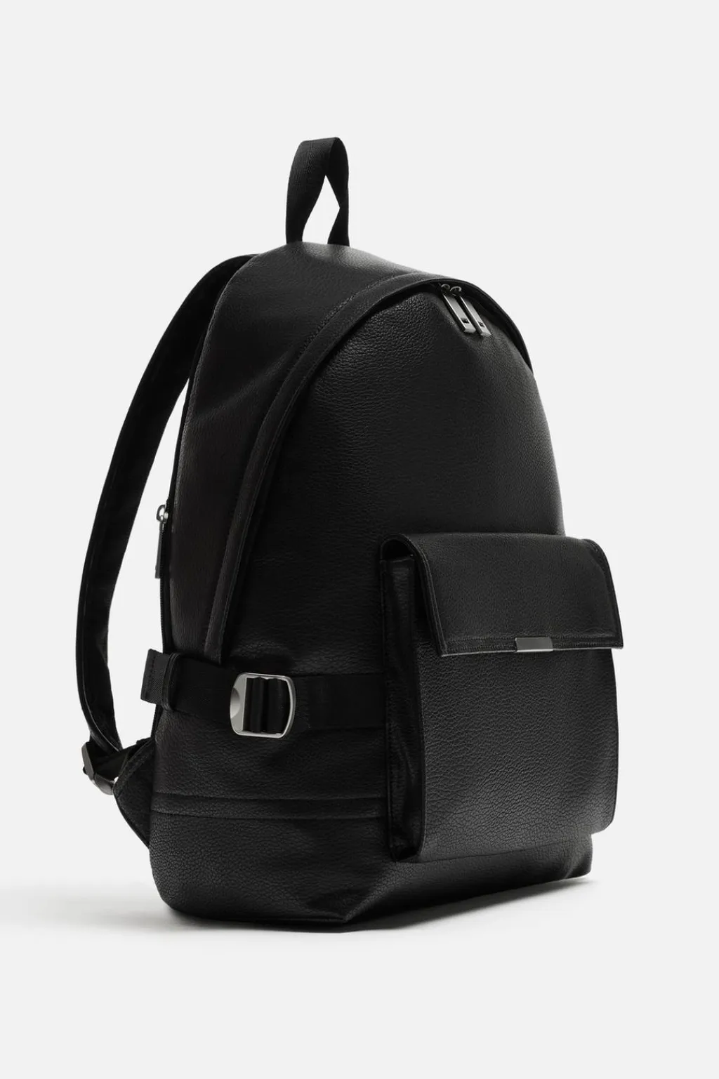 Mochila de acabado grabado. Compartimento principal con cierre mediante cremallera. Cuenta con un bolsillo interior acolchado para dispositivos electrónicos de hasta 13 pulgadas y un bolsillo interior plano con cremallera. Bolsillo frontal con solapa y cierre imantado. Bolsillo lateral con cierre mediante cremallera. Tiras ajustables laterales. Parte posterior acolchada para un mayor confort. Dispone de un asa de mano y dos asas de hombro ajustables y acolchadas.