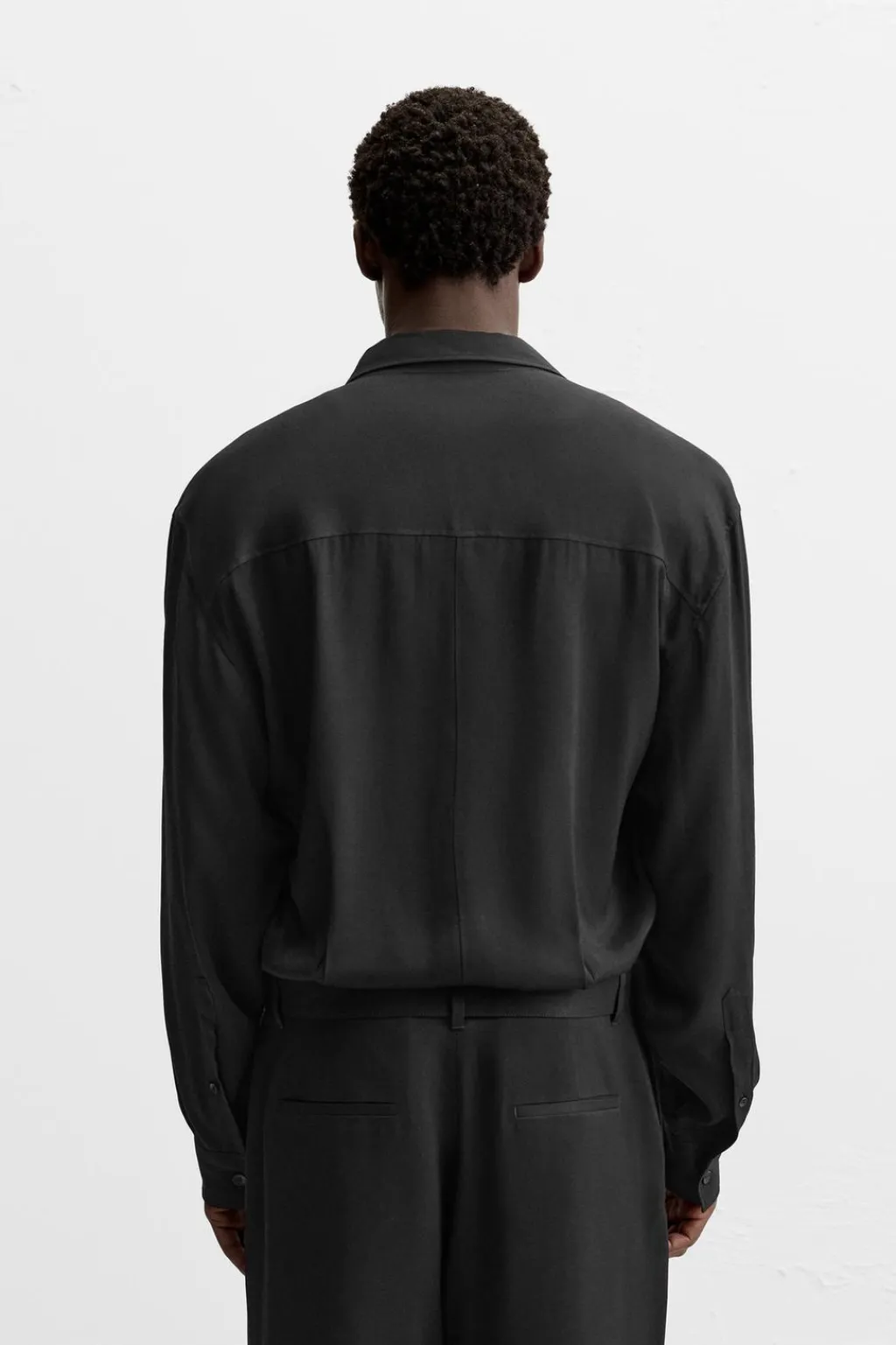 Mono relaxed fit confeccionado en tejido de viscosa. Cuello solapa y manga larga acabada en puño con botón. Cintura ajustable con cinturón en el mismo tejido y detalle de pliegues frontales. Bolsillos en delantero y bolsillos traseros de vivo. Cierre frontal de botonadura.