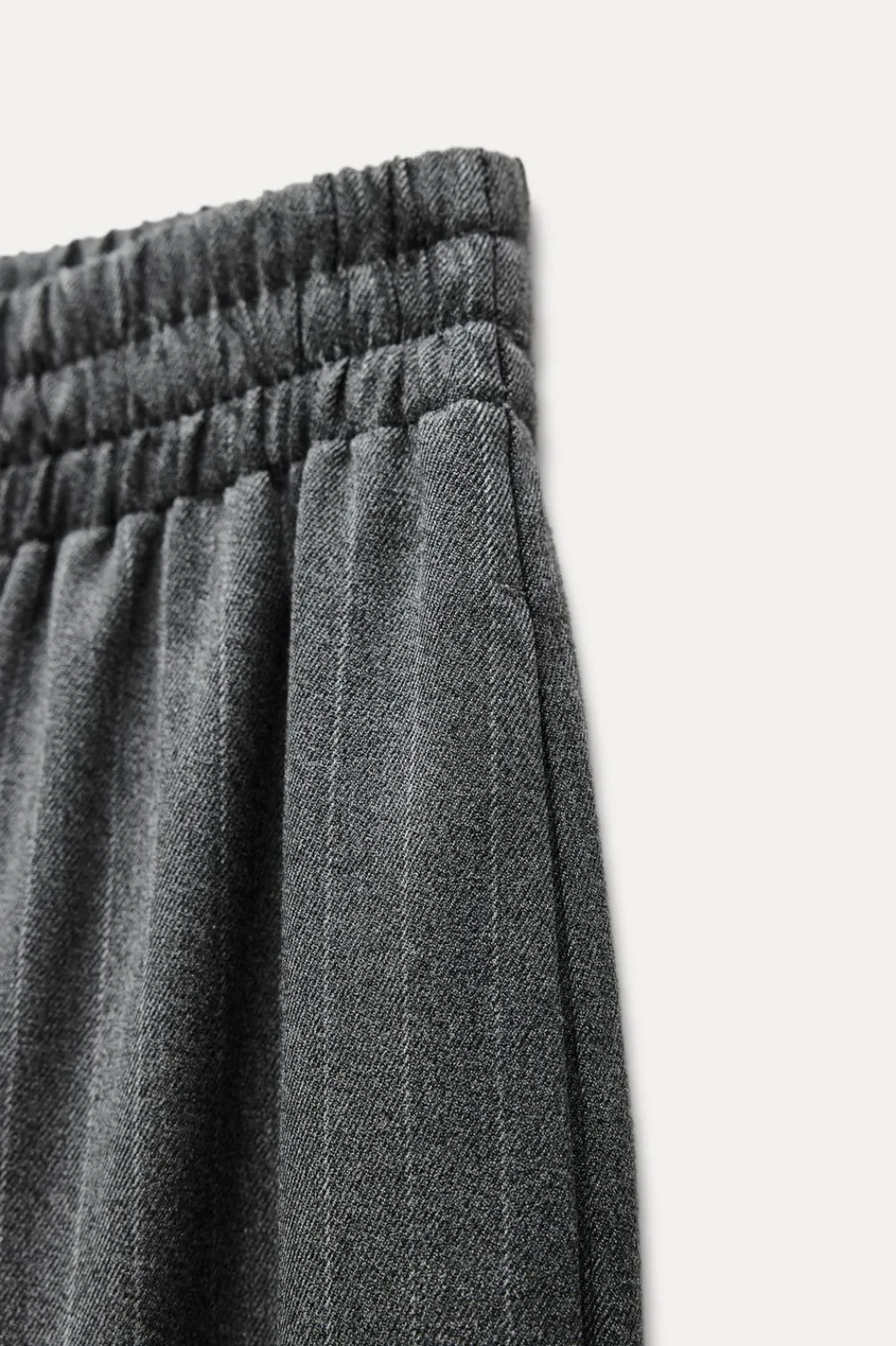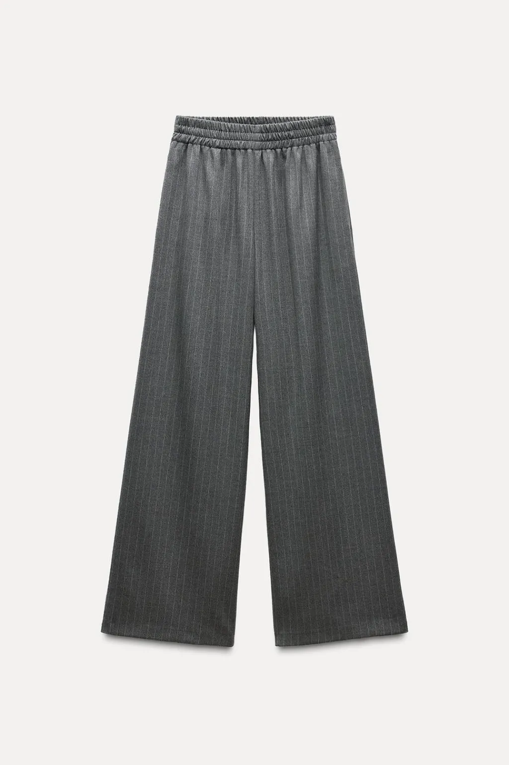 Pantalón de tiro alto con cintura elástica. Pernera ancha.