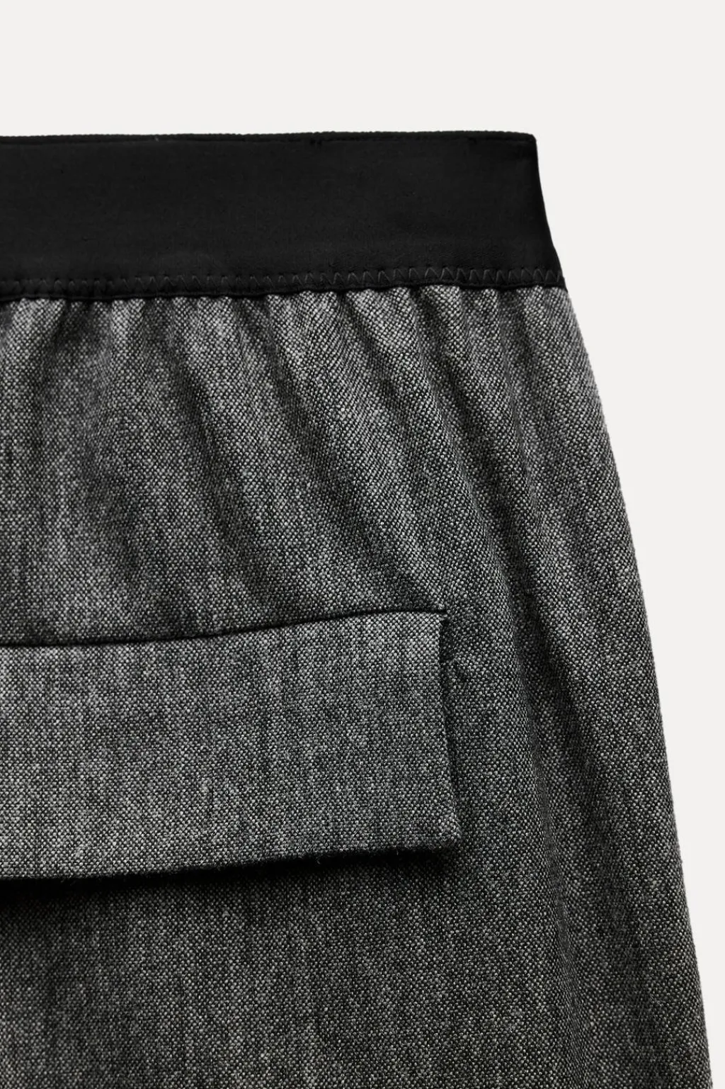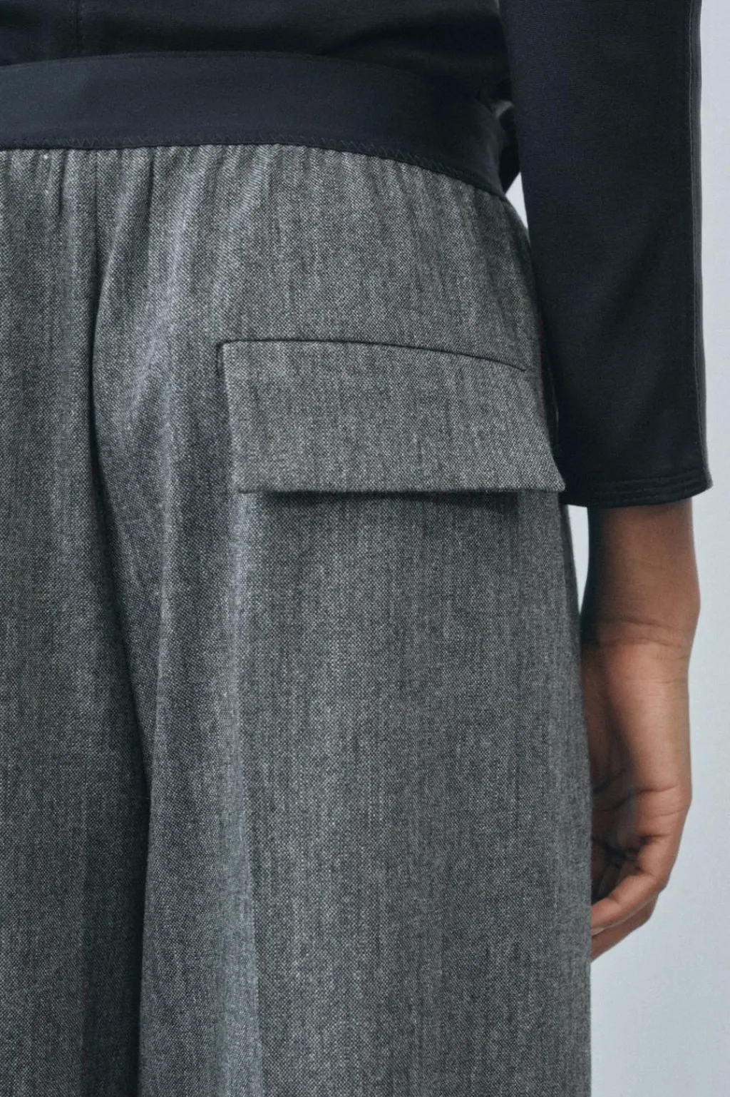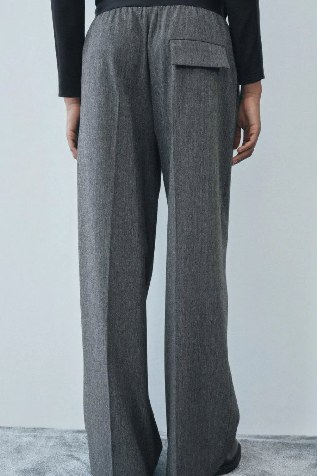 Pantalón confeccionado en hilatura con lana 29%. Tiro medio y cintura a contraste. Bolsillos laterales y con solapa en espalda. Detalle de pinzas en delantero. Pierna recta.