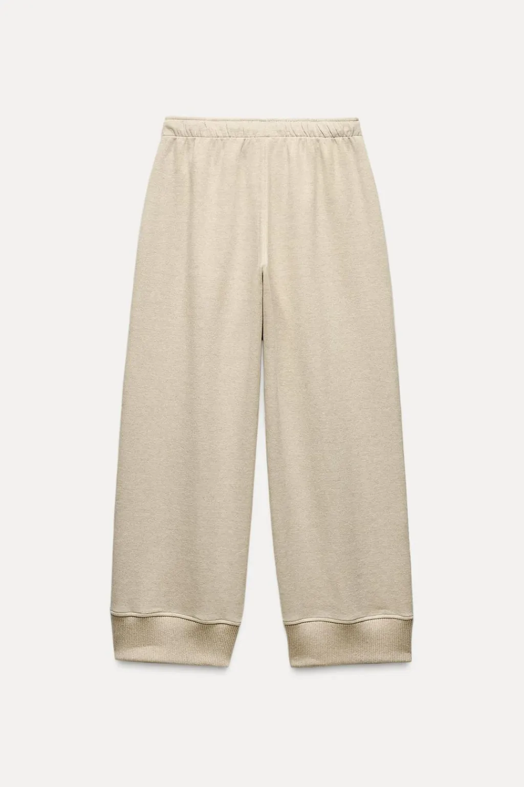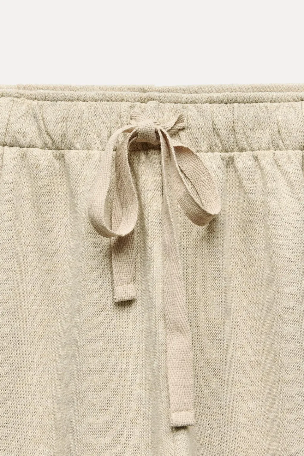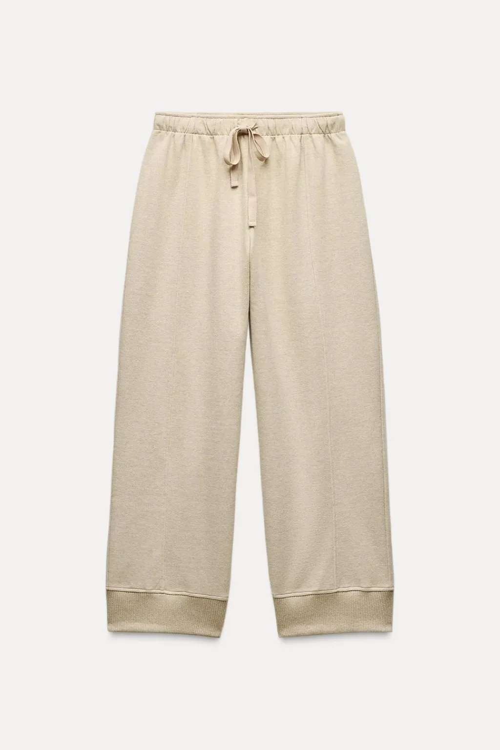 Pantalón de tiro medio y cintura ajustable con cordones. Bajo con detalle de aplicación de tejido tipo punto en rib a tono.