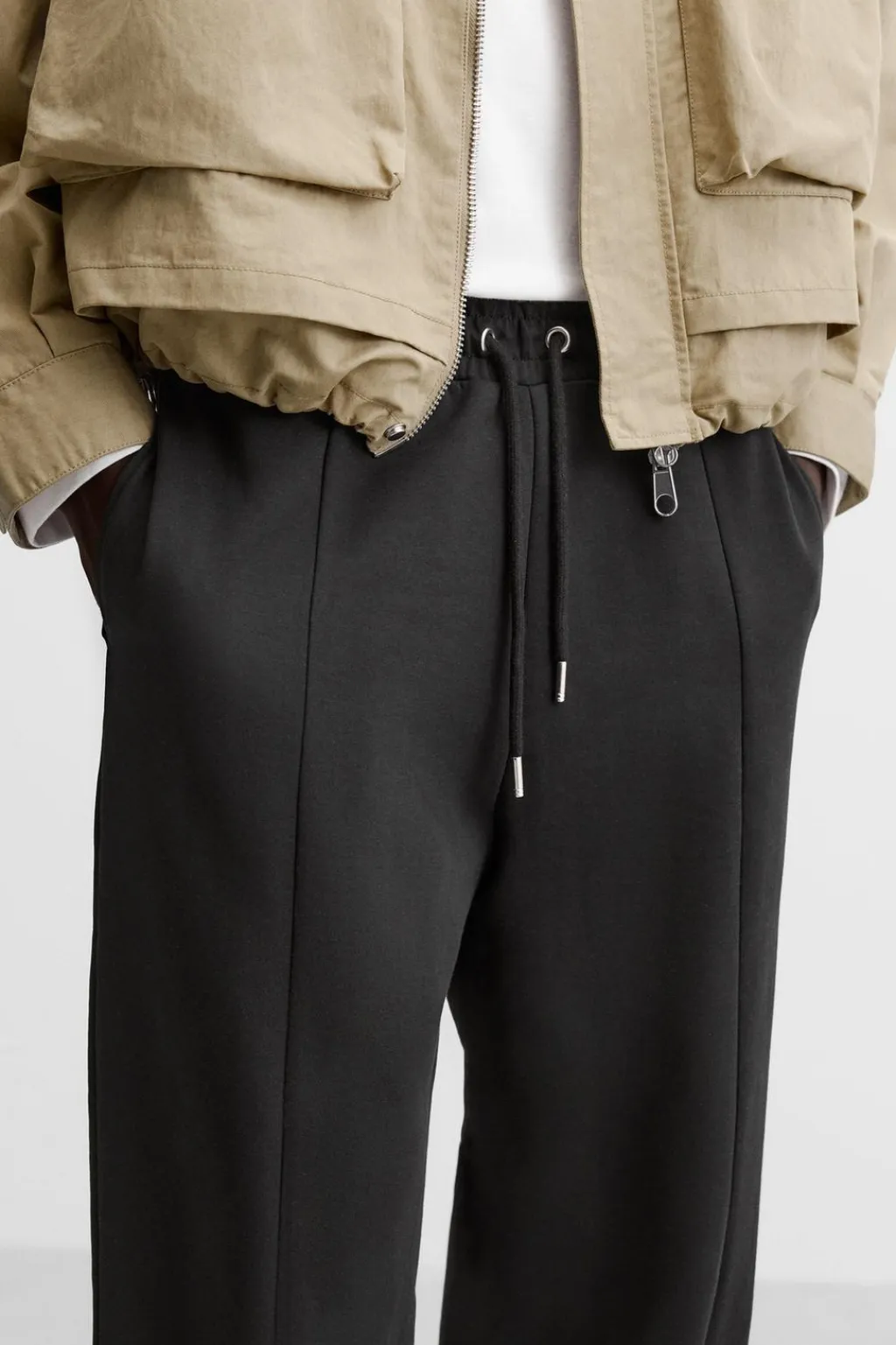 Pantalón relaxed fit. Cintura elástica ajustable con cordón. Bolsillos laterales y detalle de bolsillo trasero de plastrón. Perneras con costura frontal.