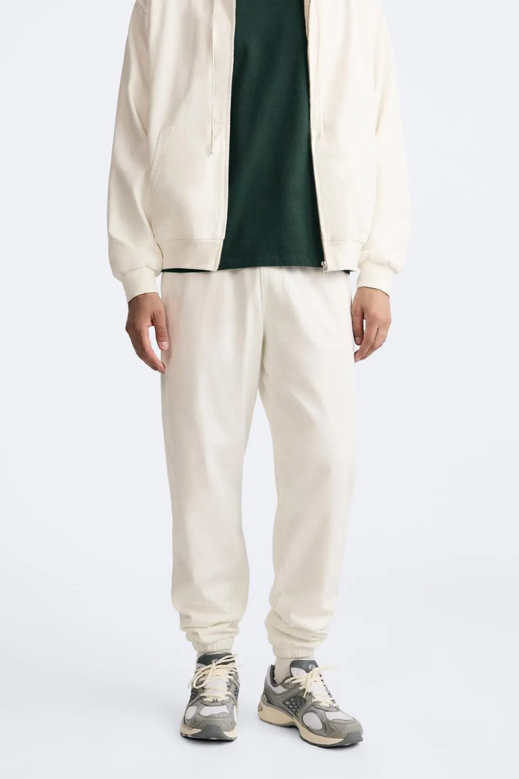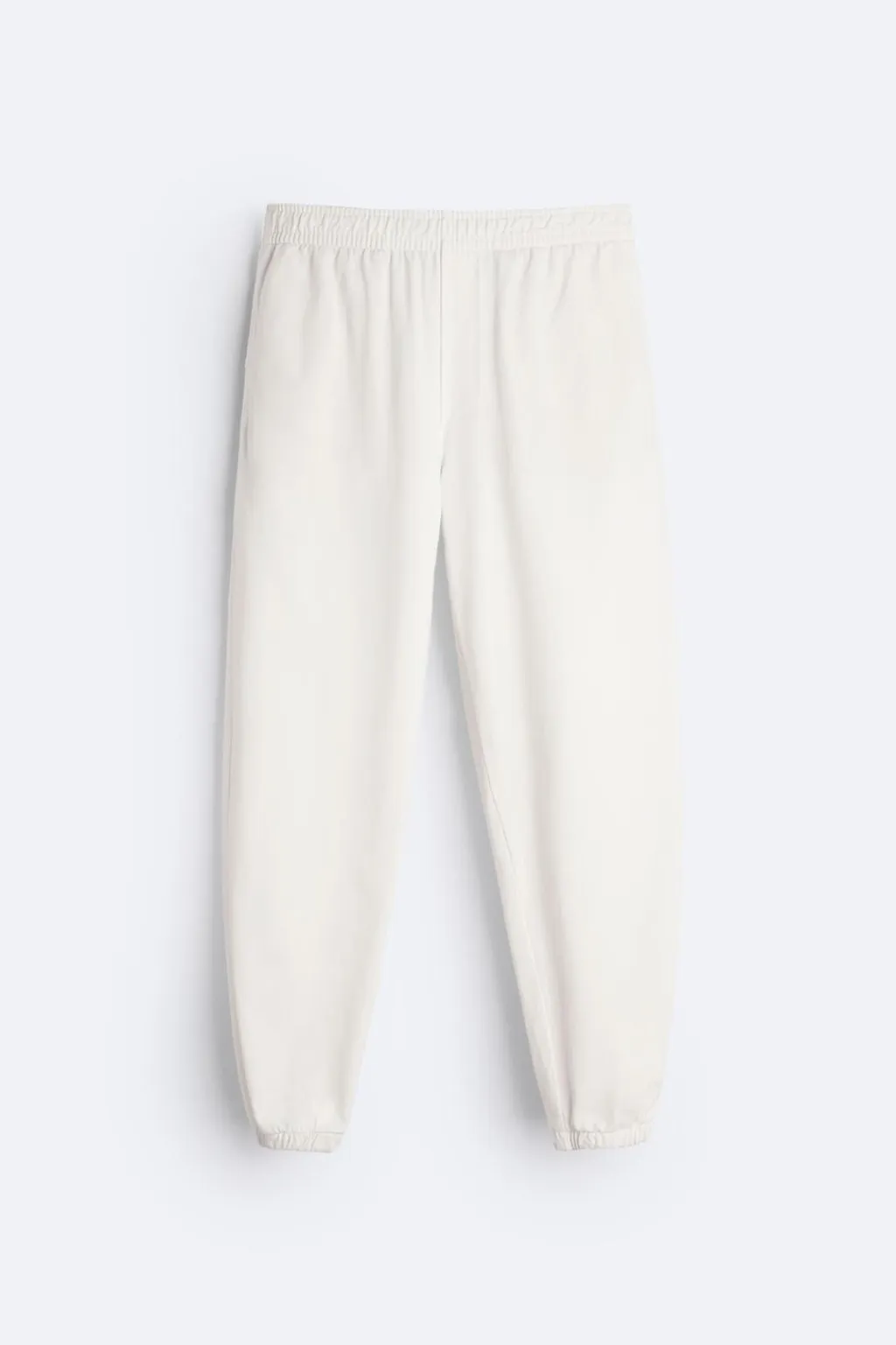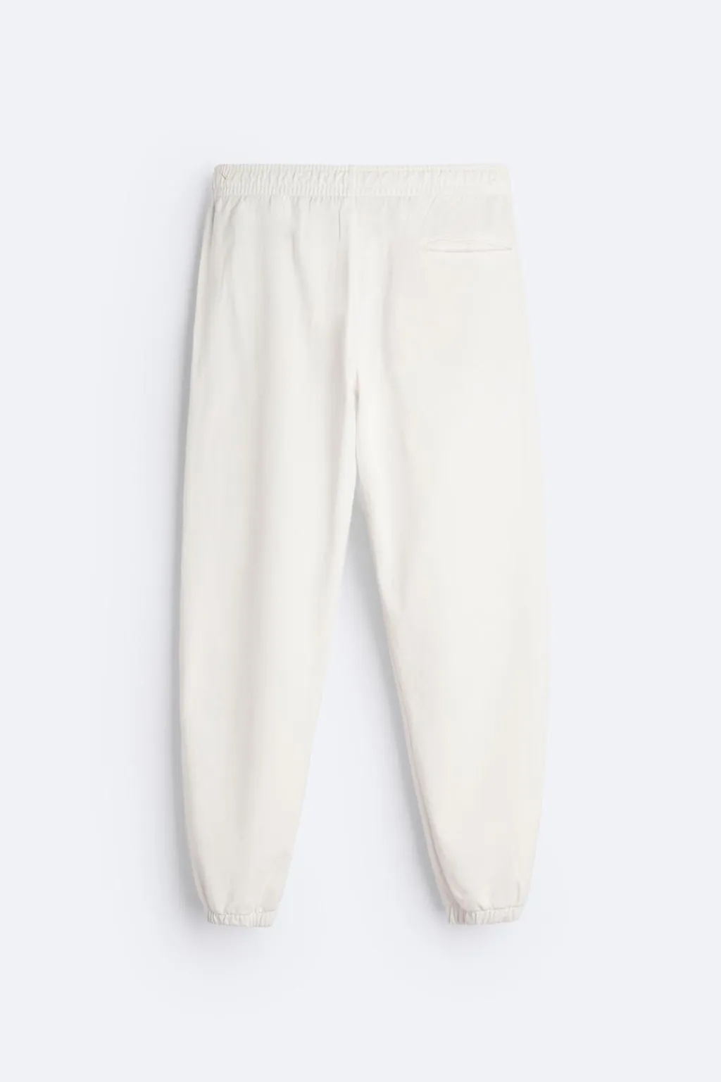 Pantalón jogger relaxed fit confeccionada en tejido de algodón compacto. Cintura elástica ajustable con cordón interior. Bolsillos laterales y detalle de bolsillo plastrón trasero. Bajo acabado en puño con elástico.