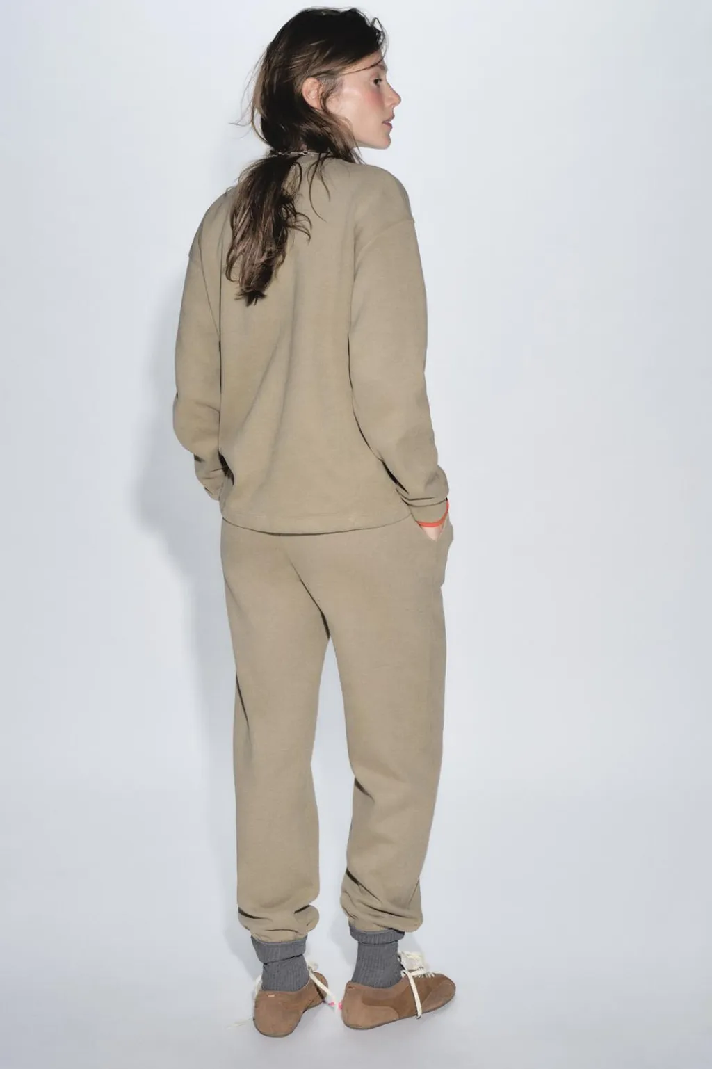 Pantalón de tiro medio y cintura elástica ajustable con cordones. Bolsillos laterales ocultos en costura. Bajo acabado en puño elástico.