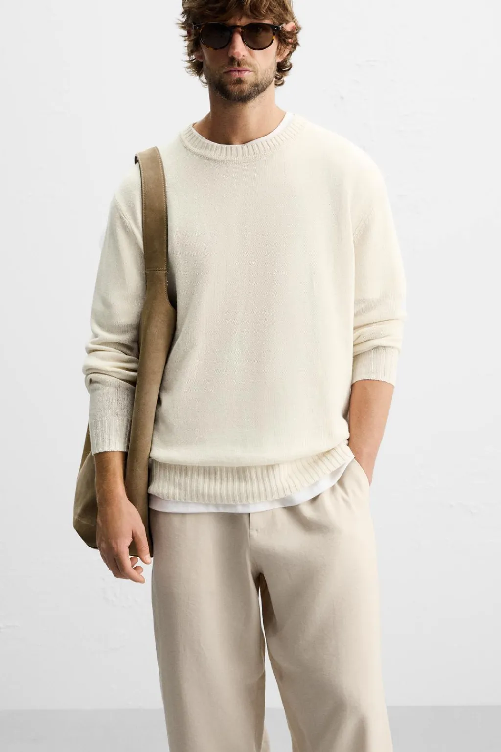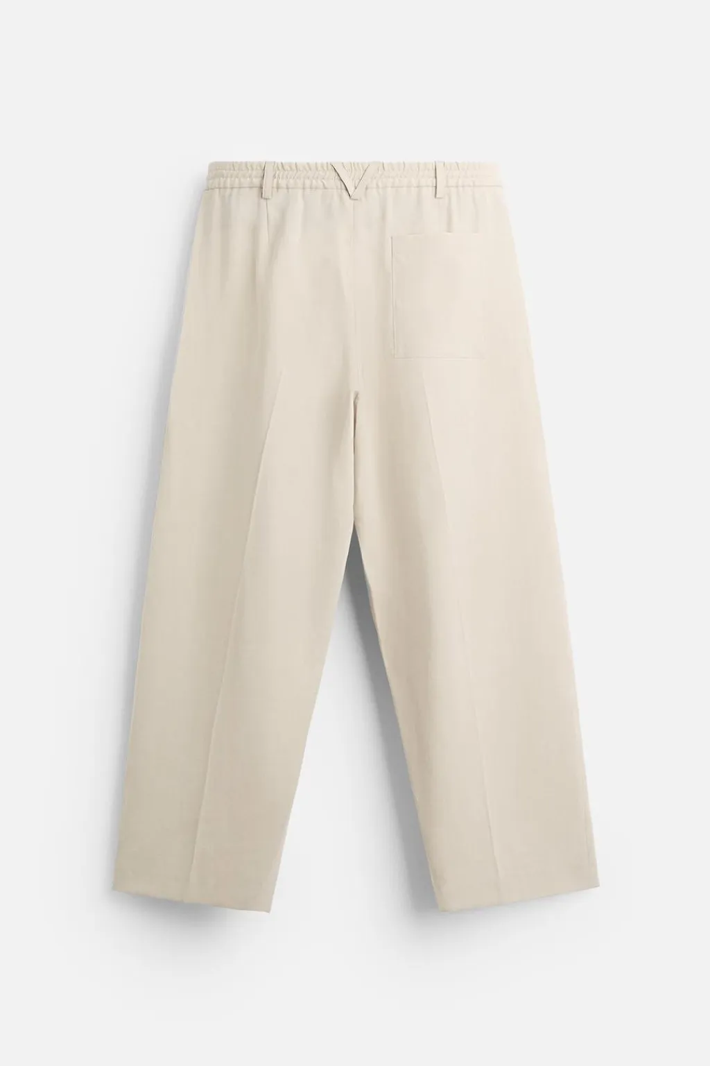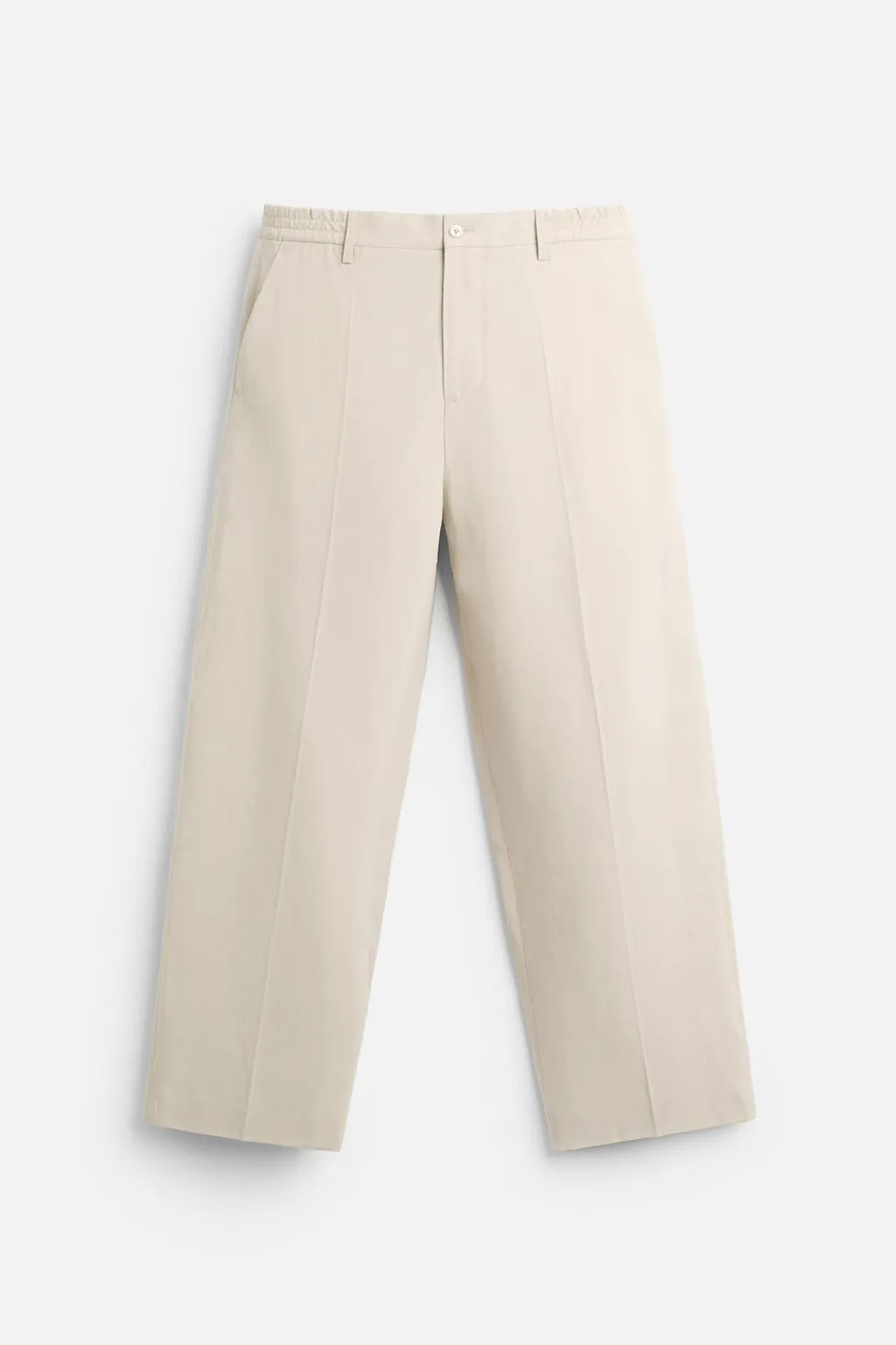 Pantalón straight fit confeccionado e tejido fluido con mezcla de lyocell. Cintura elástica. Bolsillos frontales y detalle de bolsillo trasero de plastrón. Cierre frontal con cremallera y botón.