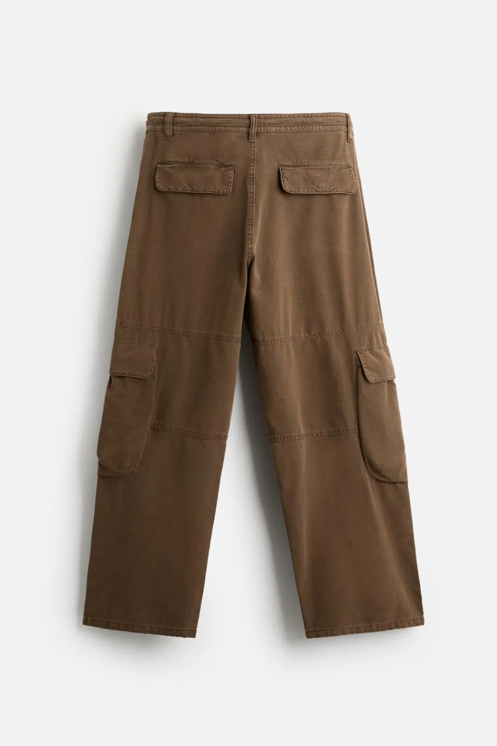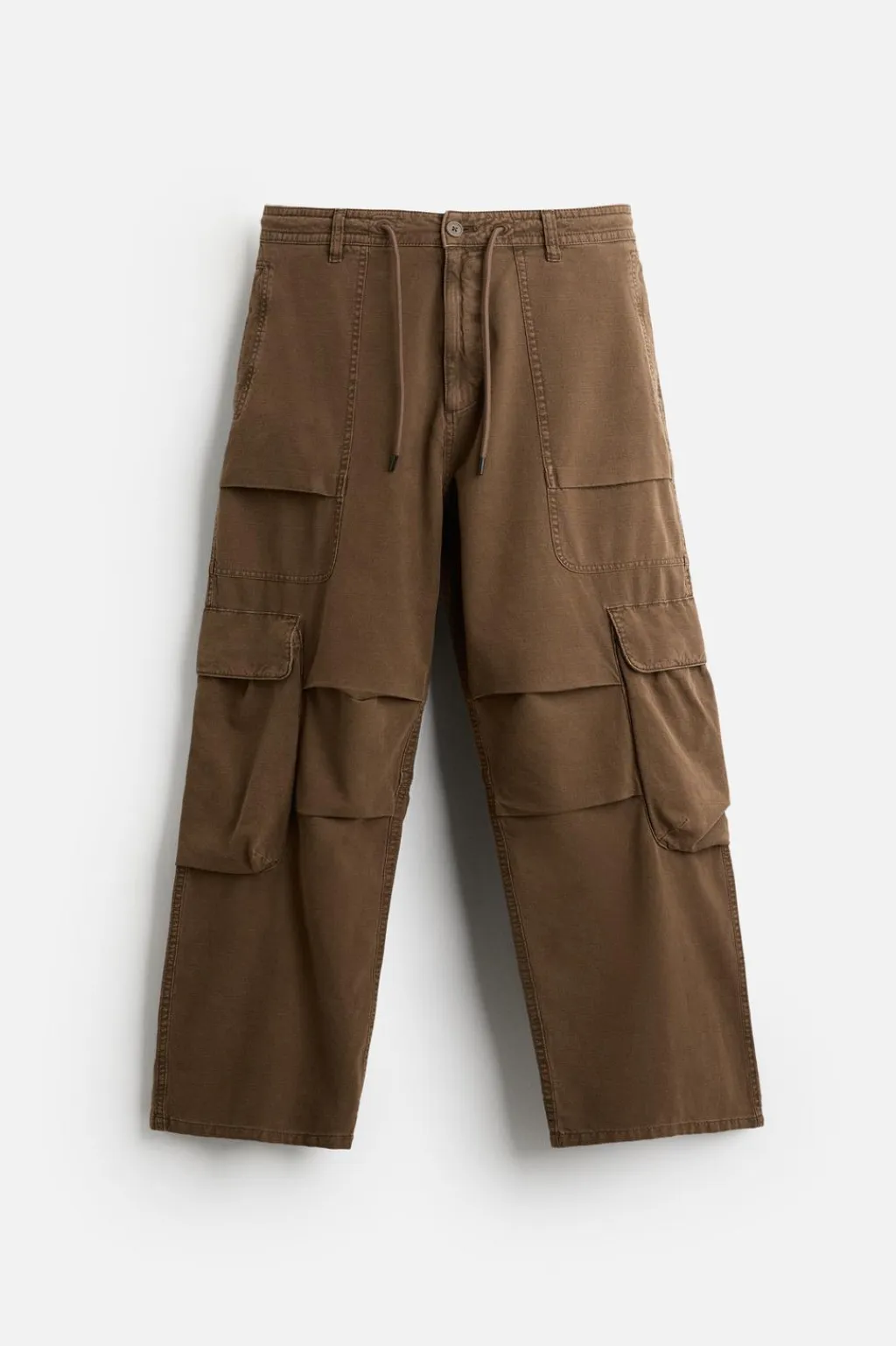 Pantalón relaxed fit. Cintura elástica ajustable con cordón. Bolsillos frontales y detalle de bolsillos traseros de vivo. Aplicación de bolsillos con solapa en perneras. Detalle de pliegues en rodillas. Bajo ajustable con cordón. Cierre frontal con cremallera y botón.