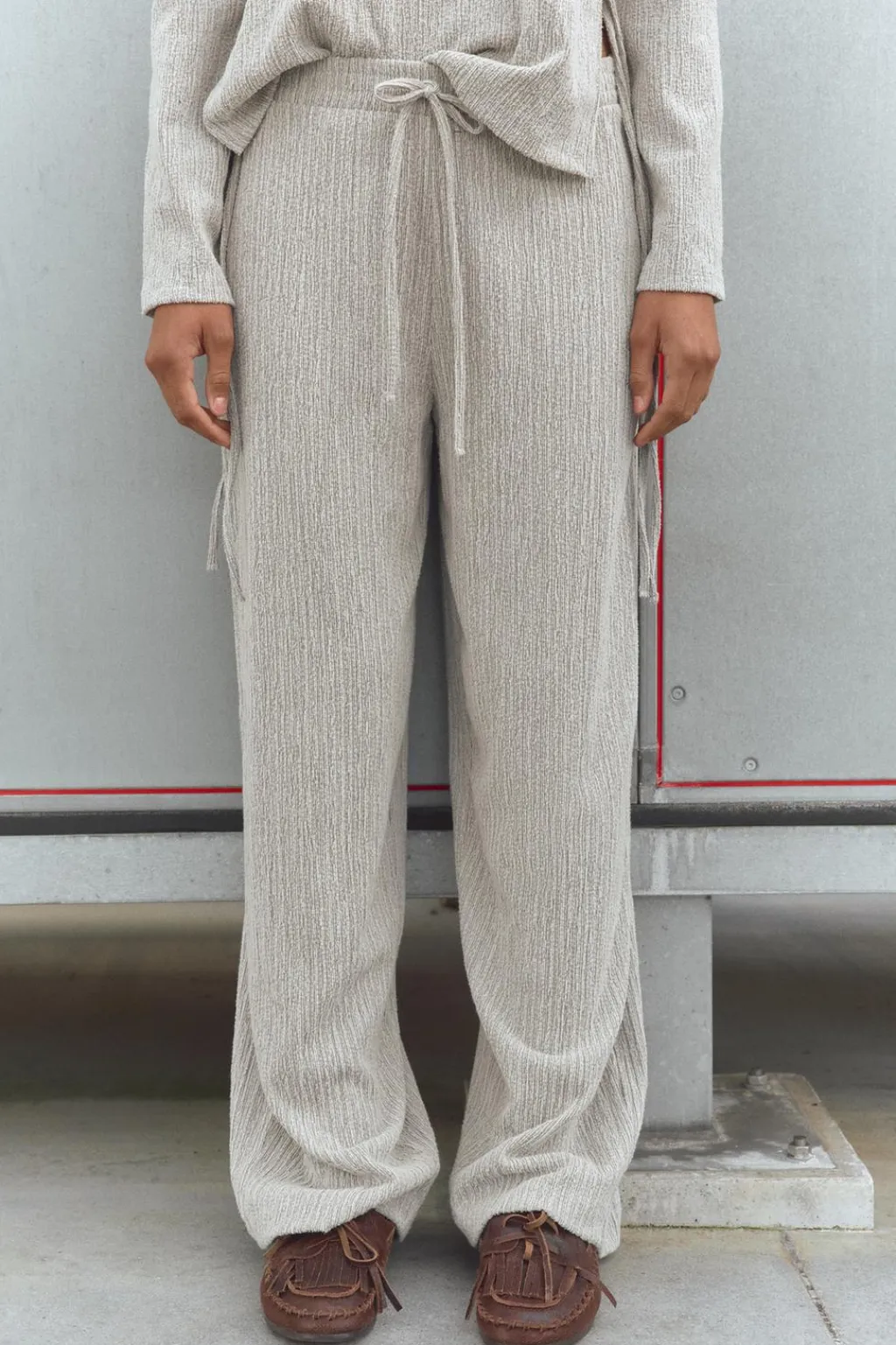 Pantalón de tiro alto con cintura elástica ajustable con cordones.