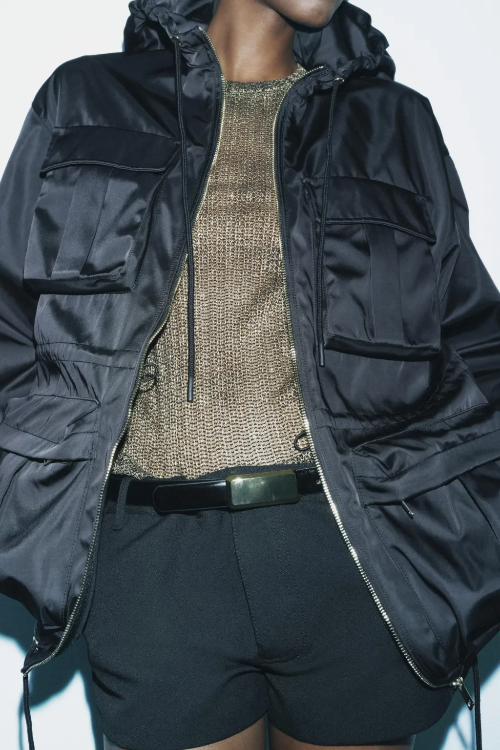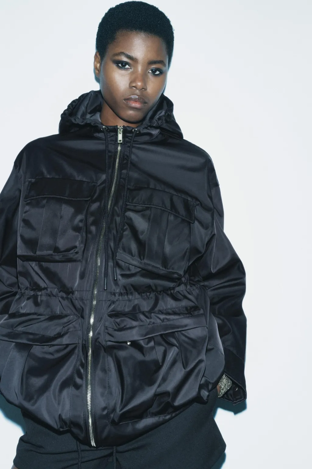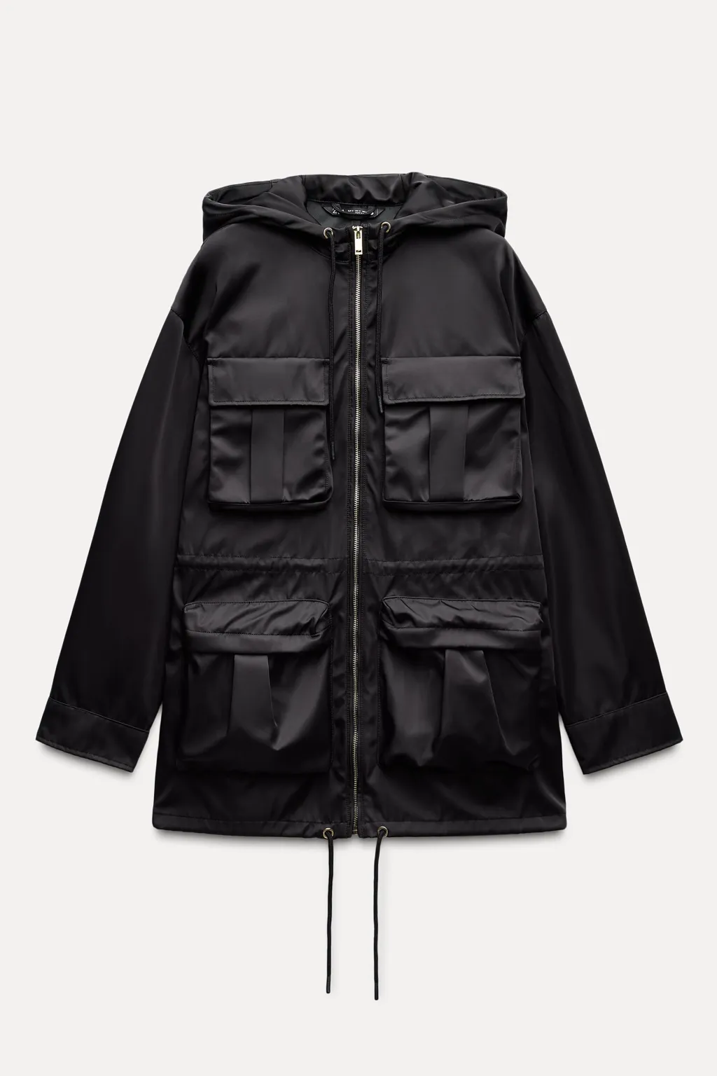 Parka con capucha ajustable con cordones. Manga larga acabada en puño. Multi bolsillos de plastrón con solapa en delantero. Cintura y bajo ajustables con cordones. Cierre frontal con cremallera metálica.
