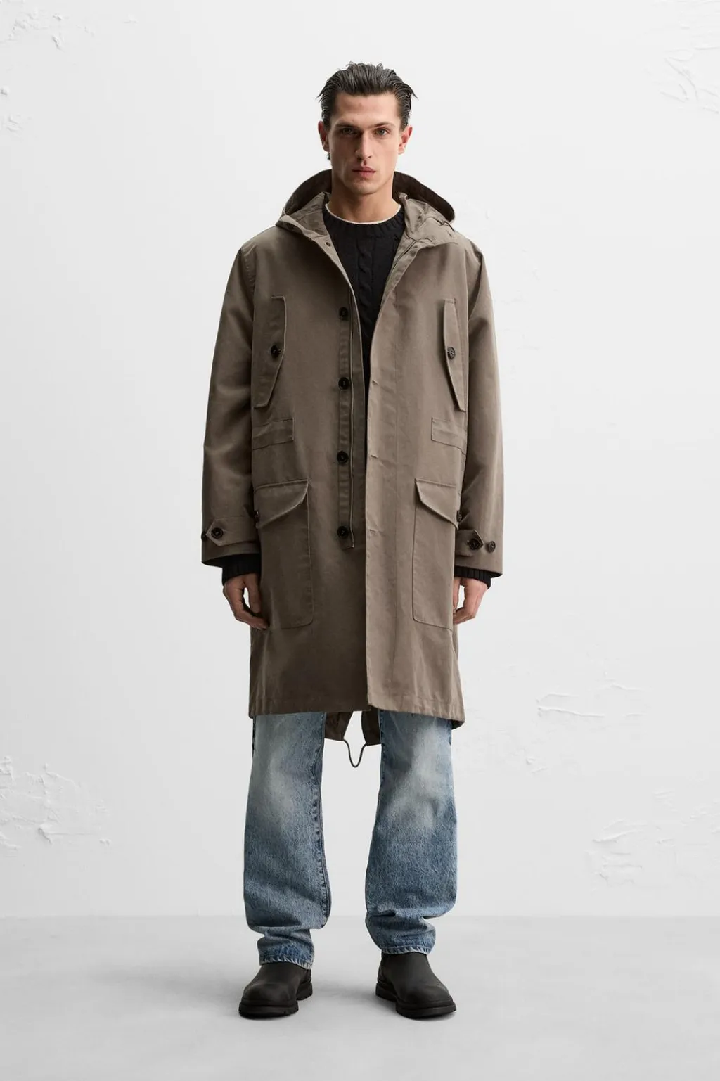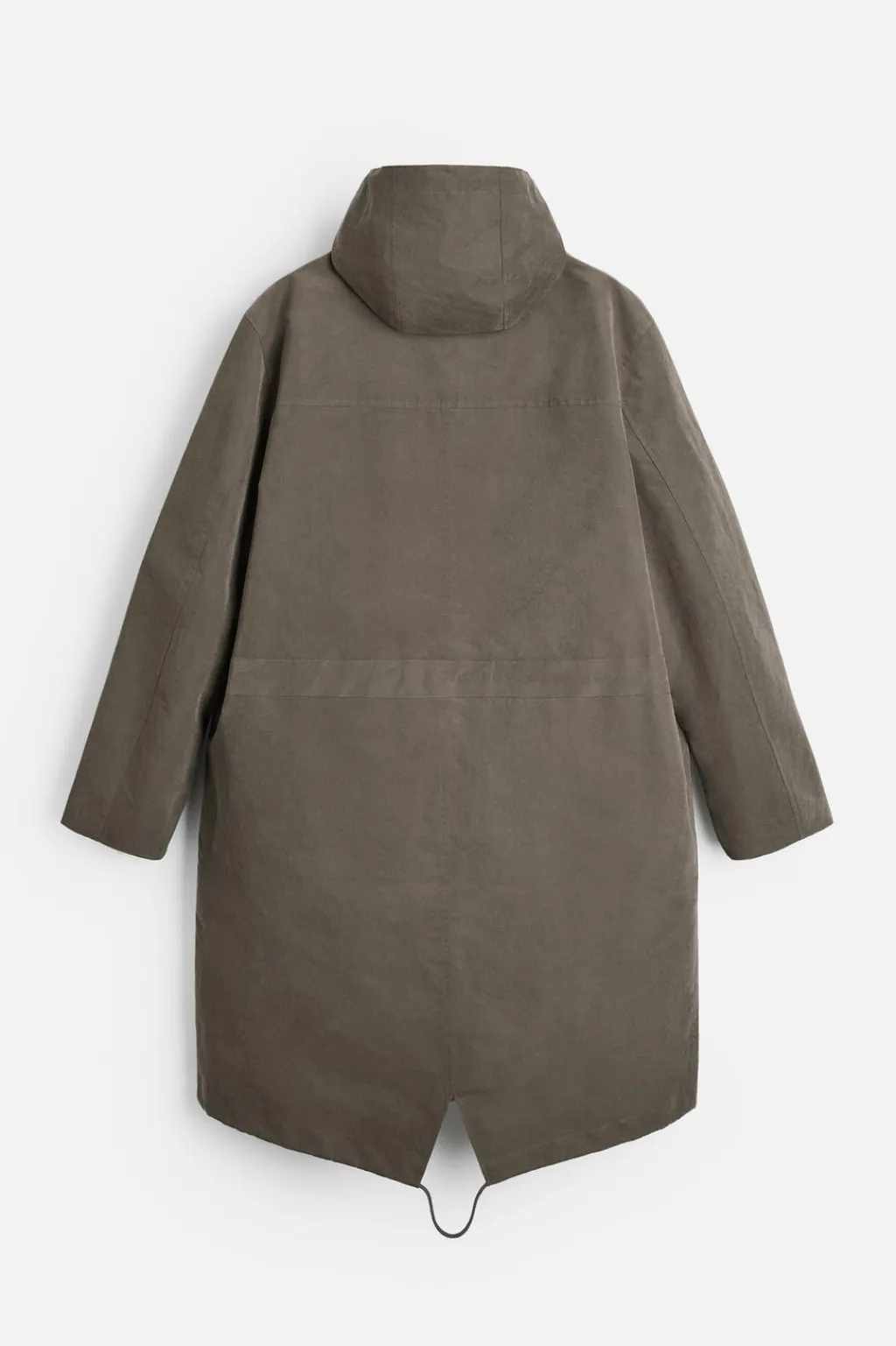 Parka relaxed fit confeccionada en tejido técnico water repellent /Grado 1. Interior acolchado desmontable.