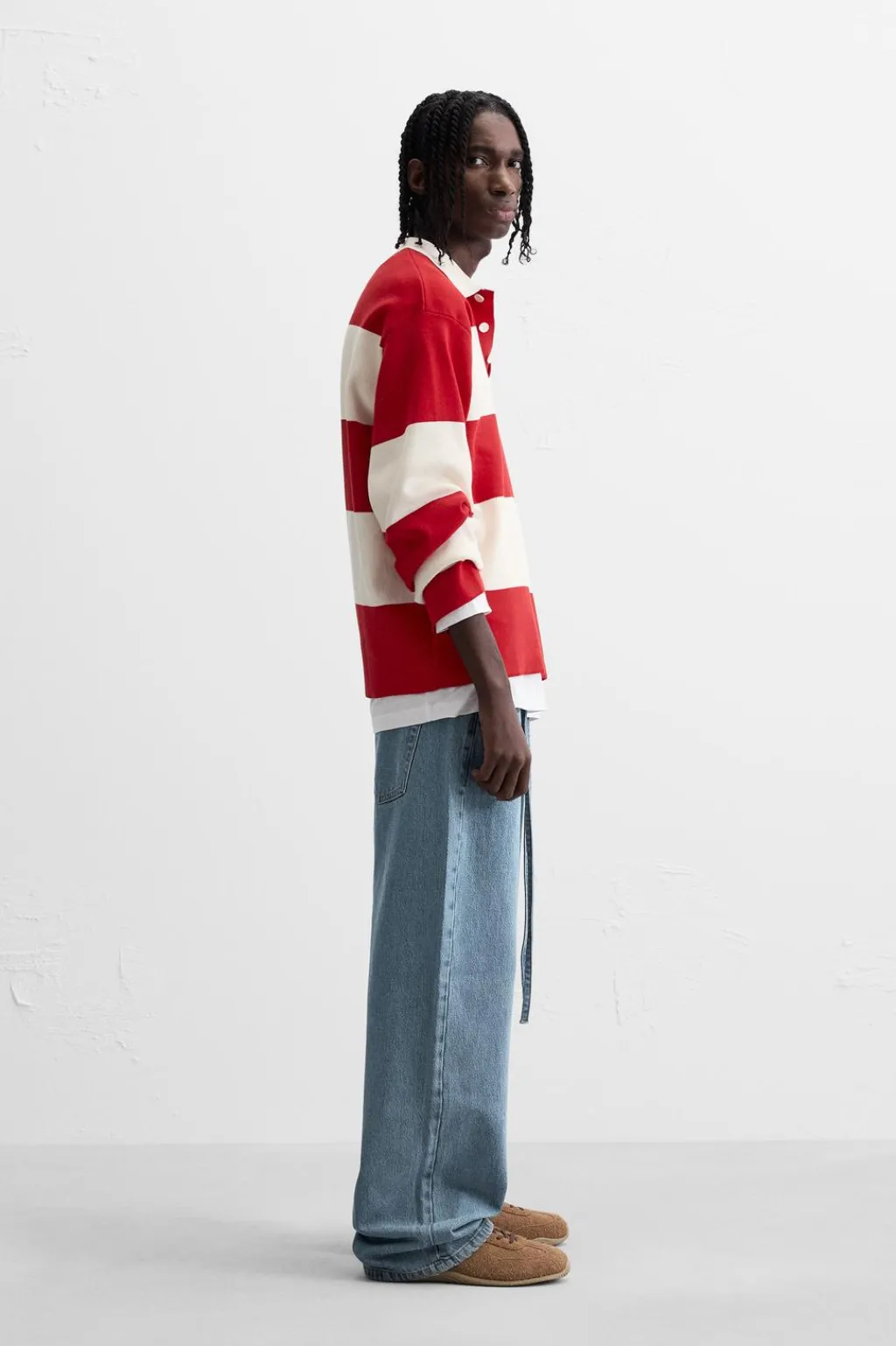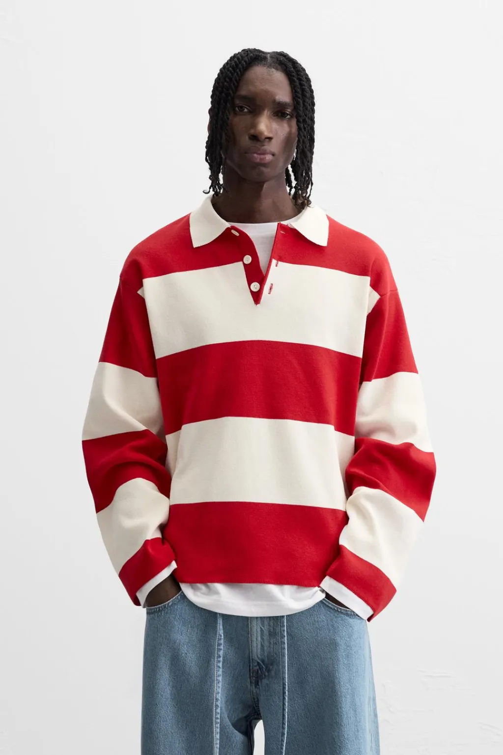 Polo relaxed fit. Cuello solapa con cierre frontal de botonadura y manga larga.