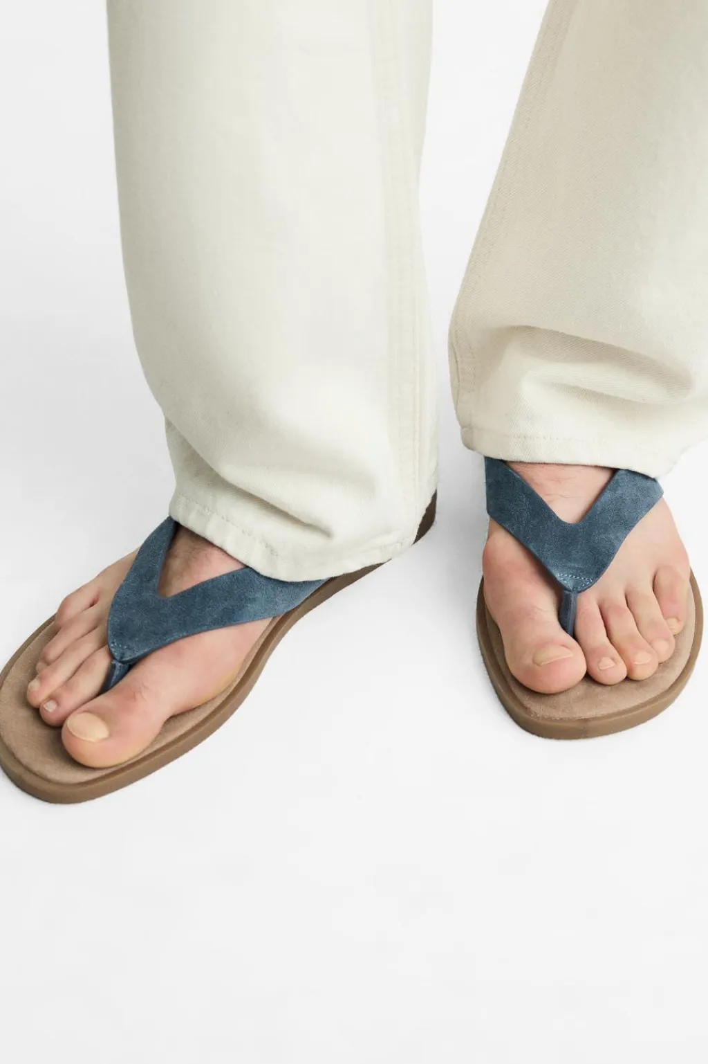 Sandalia con dos tiras, fabricada en piel con acabado serraje. Las tiras abrazan el pie.