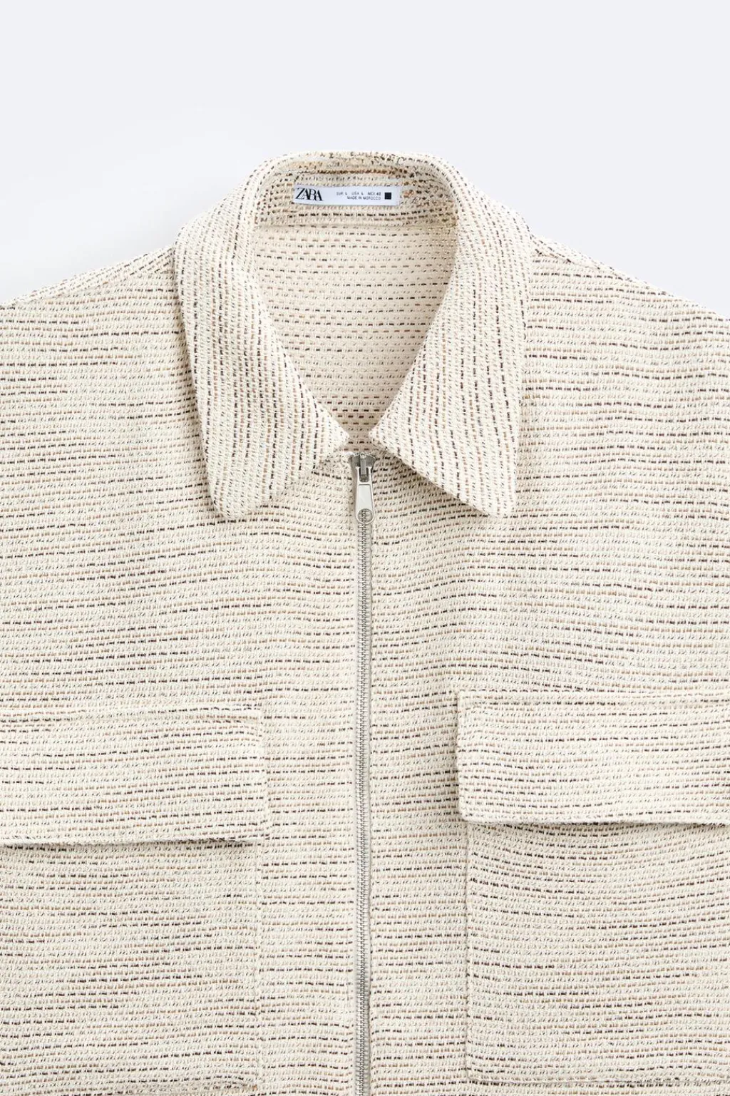 Sobrecamisa regular fit confeccionada en tejido con mezcla de algodón. Cuello solapa y manga larga acabada en puño con botón. Bolsillos plastrón con solapa en pecho. Cierre frontal de cremallera.