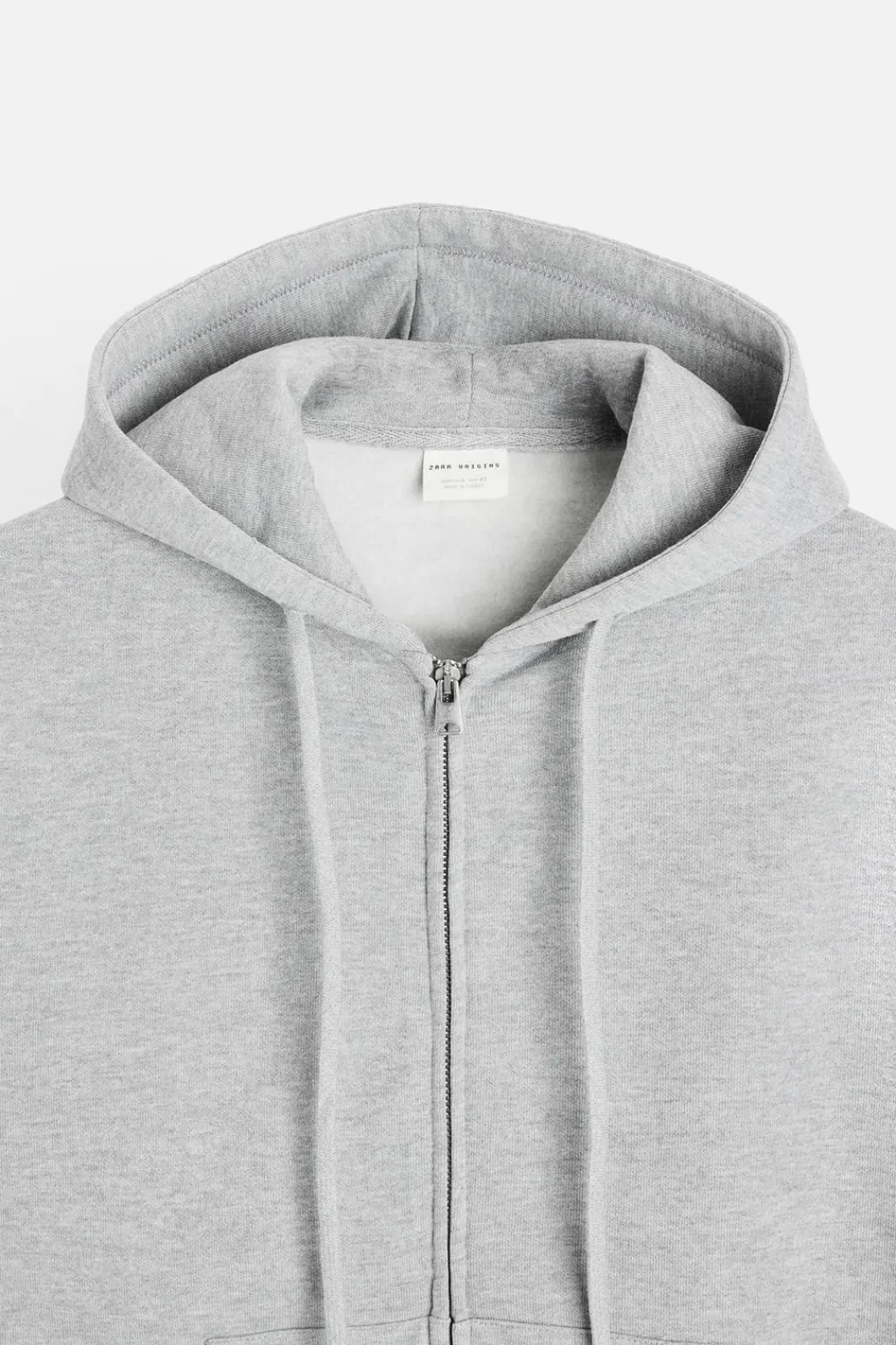 Cuello con capucha ajustable y manga larga. Bolsillos frontales tipo canguro. Acabados en rib. Cierre frontal con cremallera.