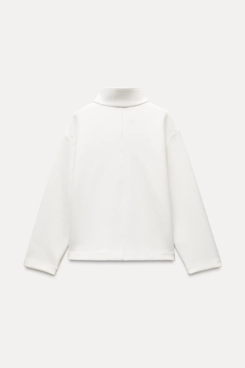Sudadera de cuello alto y manga larga. Bajo recto. Cierre frontal con botones a presión.