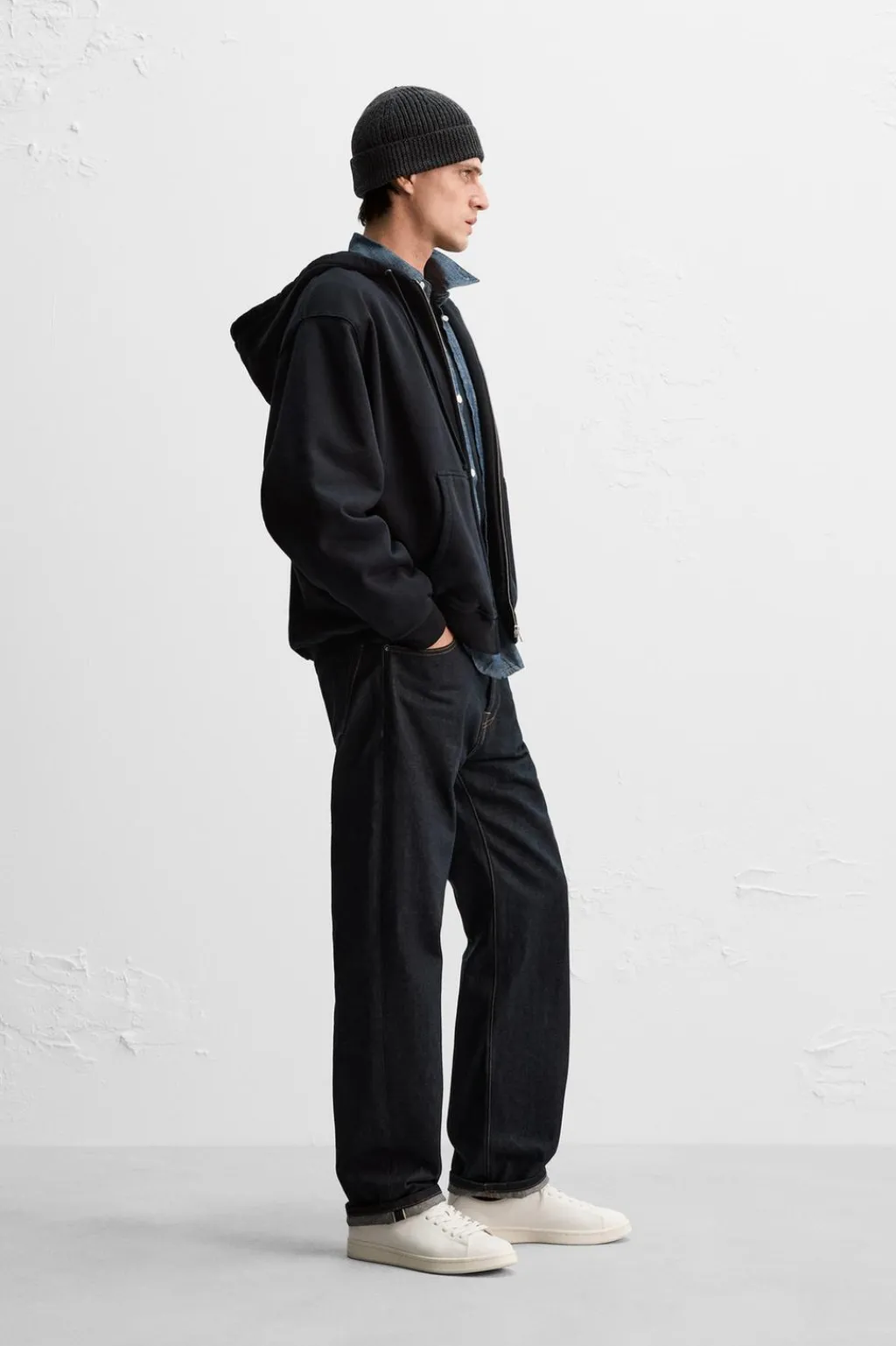 Sudadera hoodie relaxed fit confeccionada en tejido de algodón compacto y pesado con el interior forrado combinado a tono.
