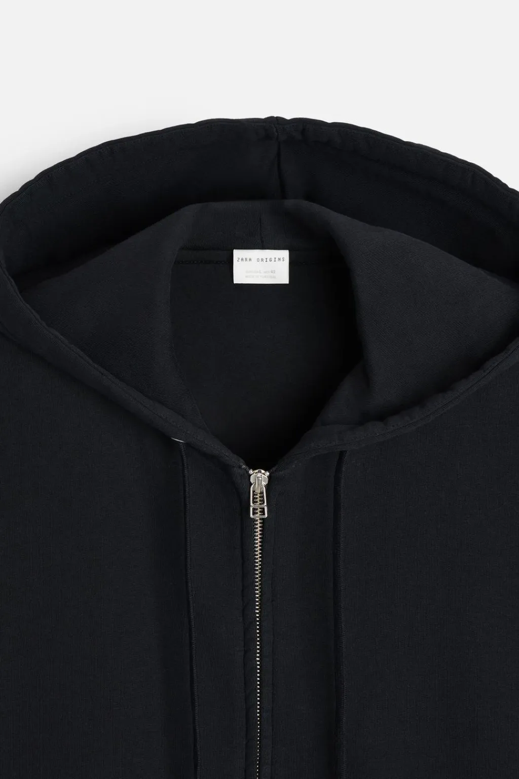Cuello con capucha ajustable y manga larga. Bolsillos frontales tipo canguro. Acabados en rib. Cierre frontal con cremallera.