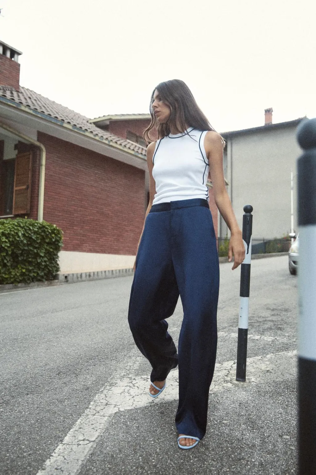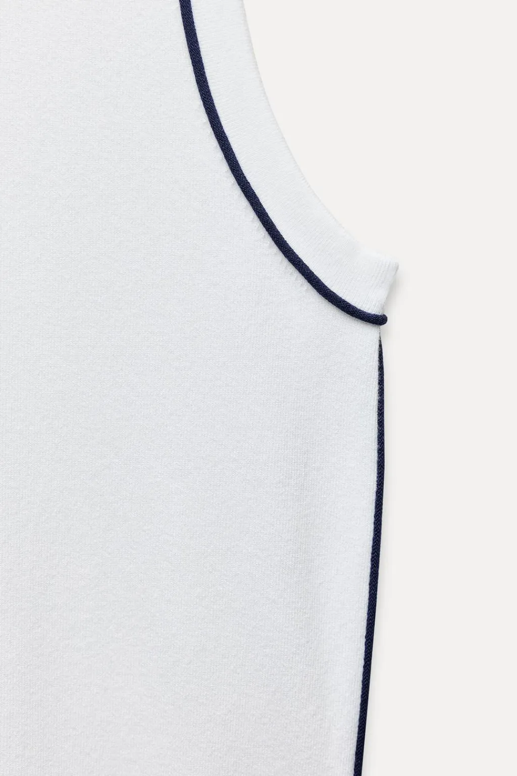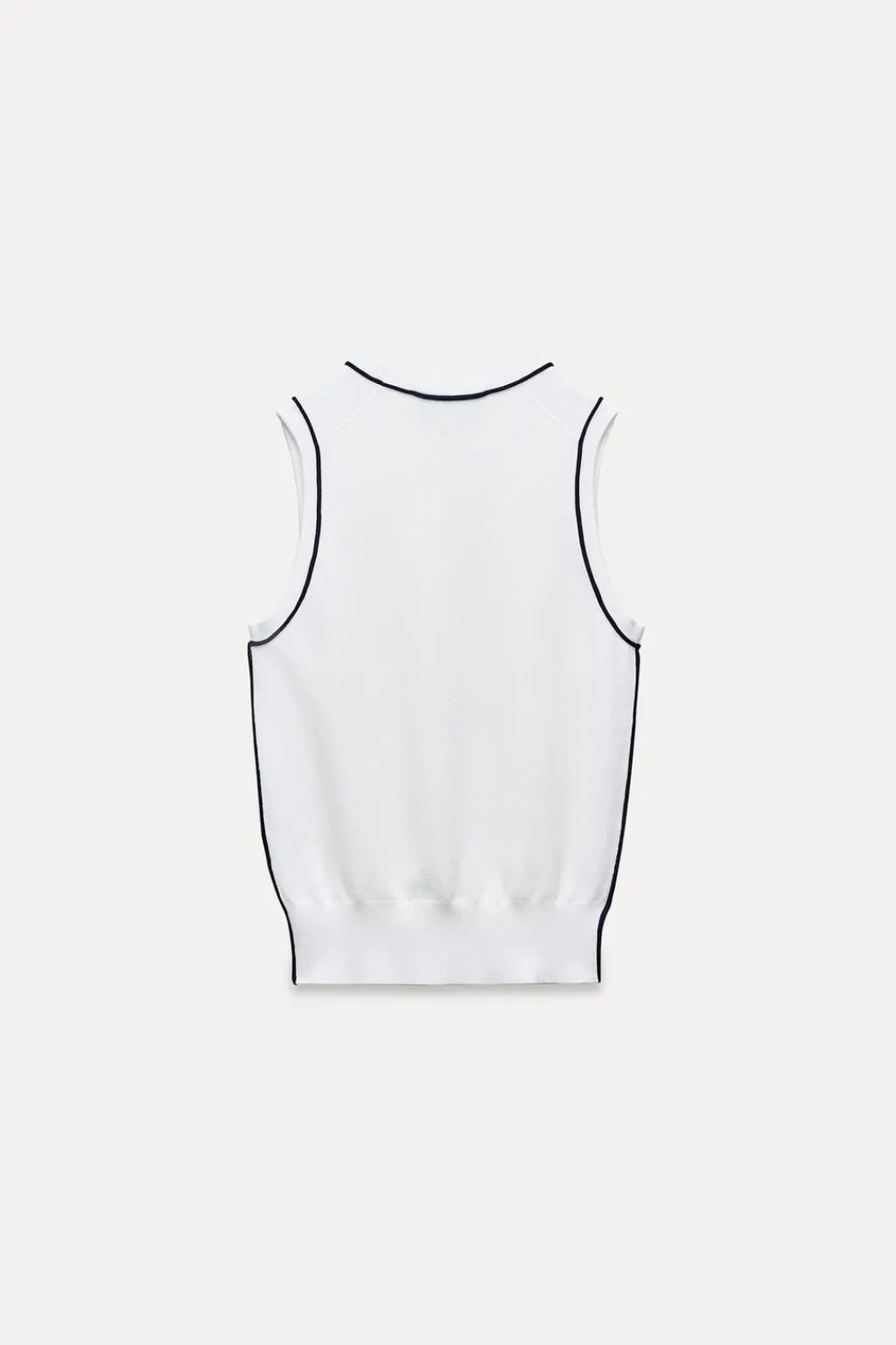 Top de cuello redondo y manga sisa. Detalle de vivos combinados a contraste.