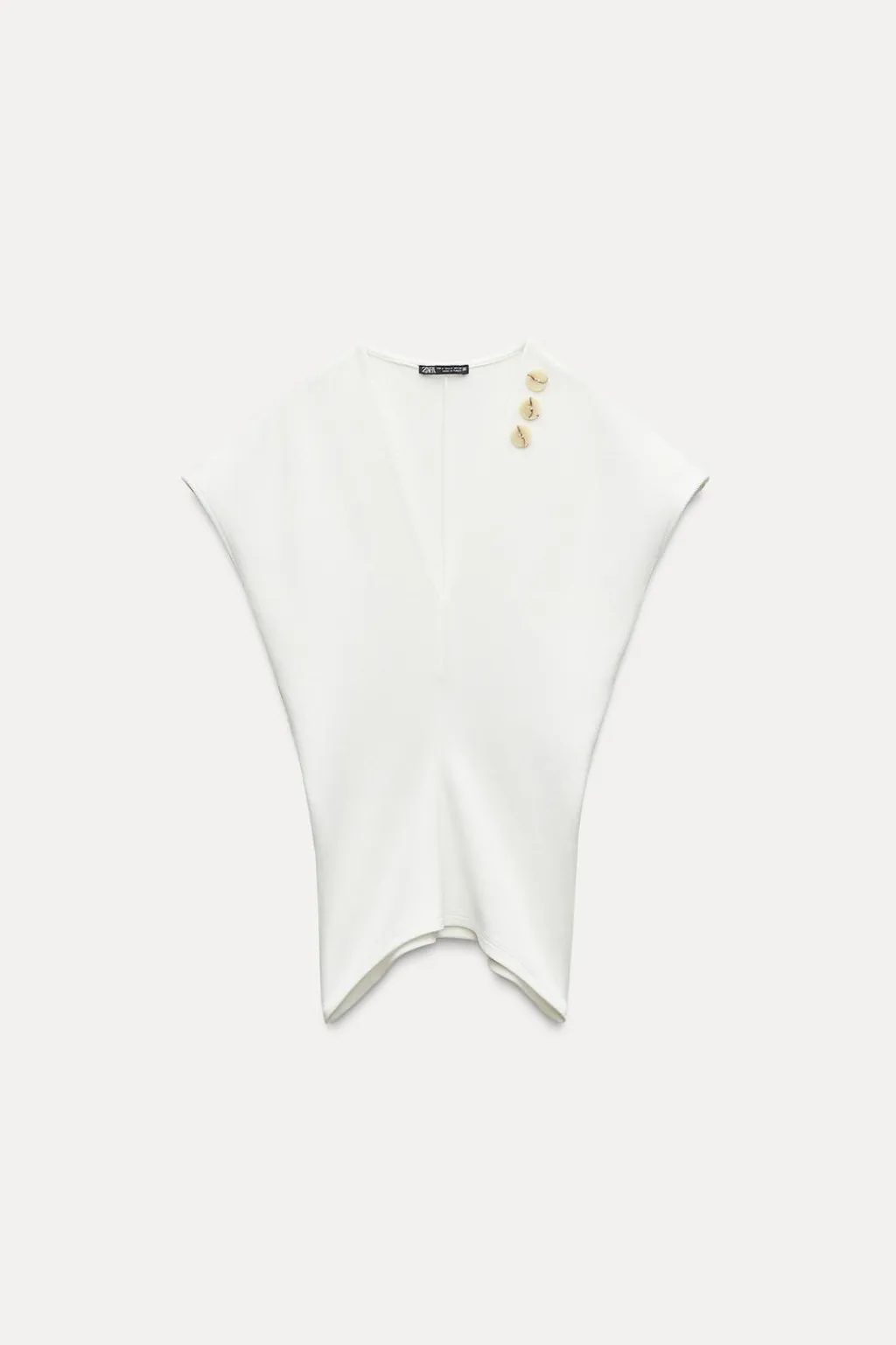 Top de escote pico y manga corta. Detalle de botones combinados a contraste.